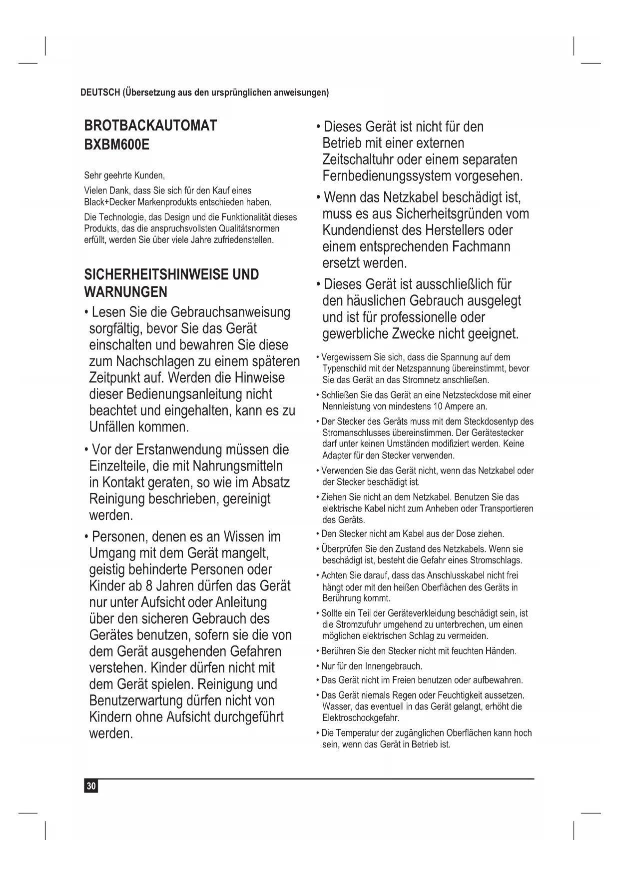 BEDIENUNGSANLEITUNG BXBM600E BLACK & DECKER