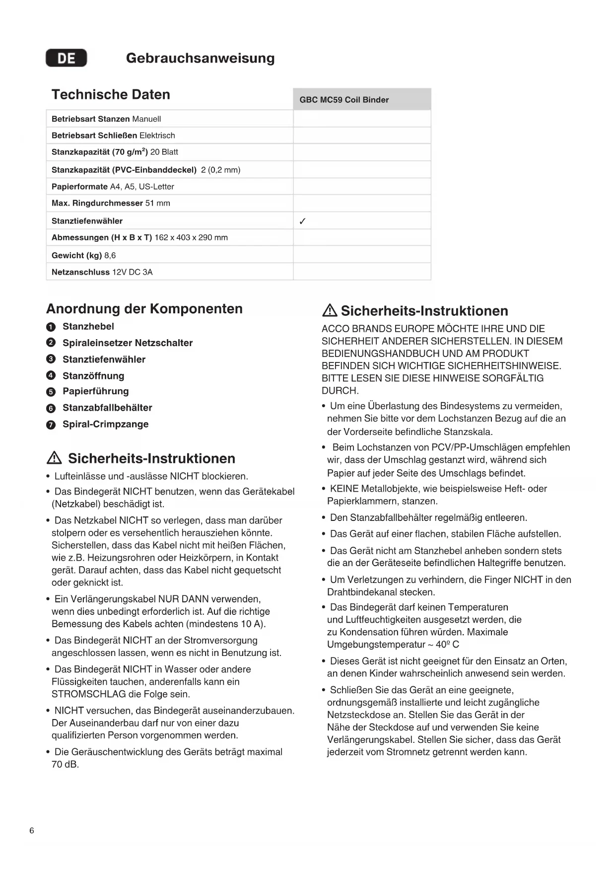 Sicherheits-Instruktionen ACCO BRANDS EUROPE MÖCHTE IHRE UND DIE