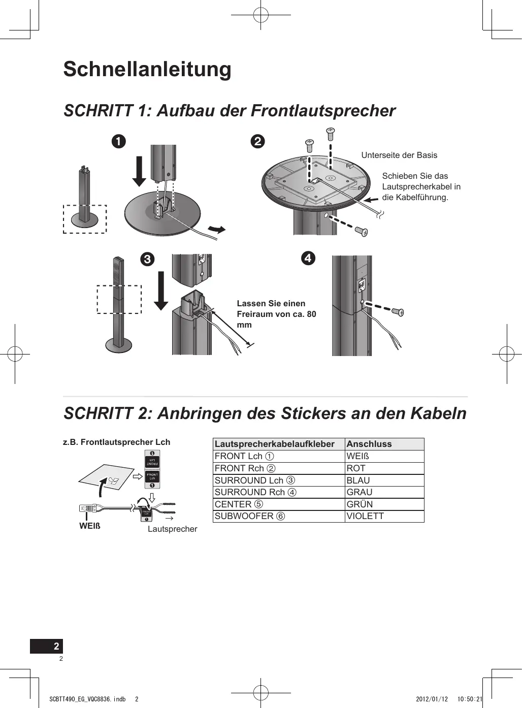 2012/01/12 10:50:20 Schnellanleitung SCHRITT 1: Aufbau der Frontlautsprecher