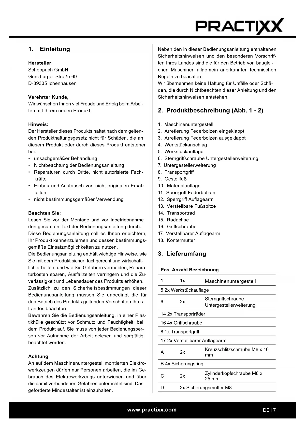 Scheppach GmbH · Günzburger Str. 69 · 89335 Ichenhausen (Deutschland) · www.practixx.com
