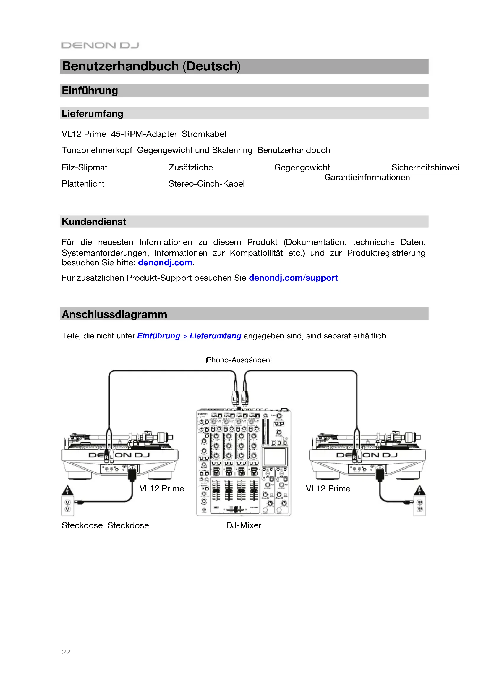 Kundendienst Für die neuesten Informationen zu diesem Produkt (Dokumentation, technische Daten, Systemanforderungen, Informationen zur Kompatibilität etc.) und zur Produktregistrierung besuchen Sie bitte: denondj.com. Für zusätzlichen Produkt-Support besuchen Sie denondj.com/support.
