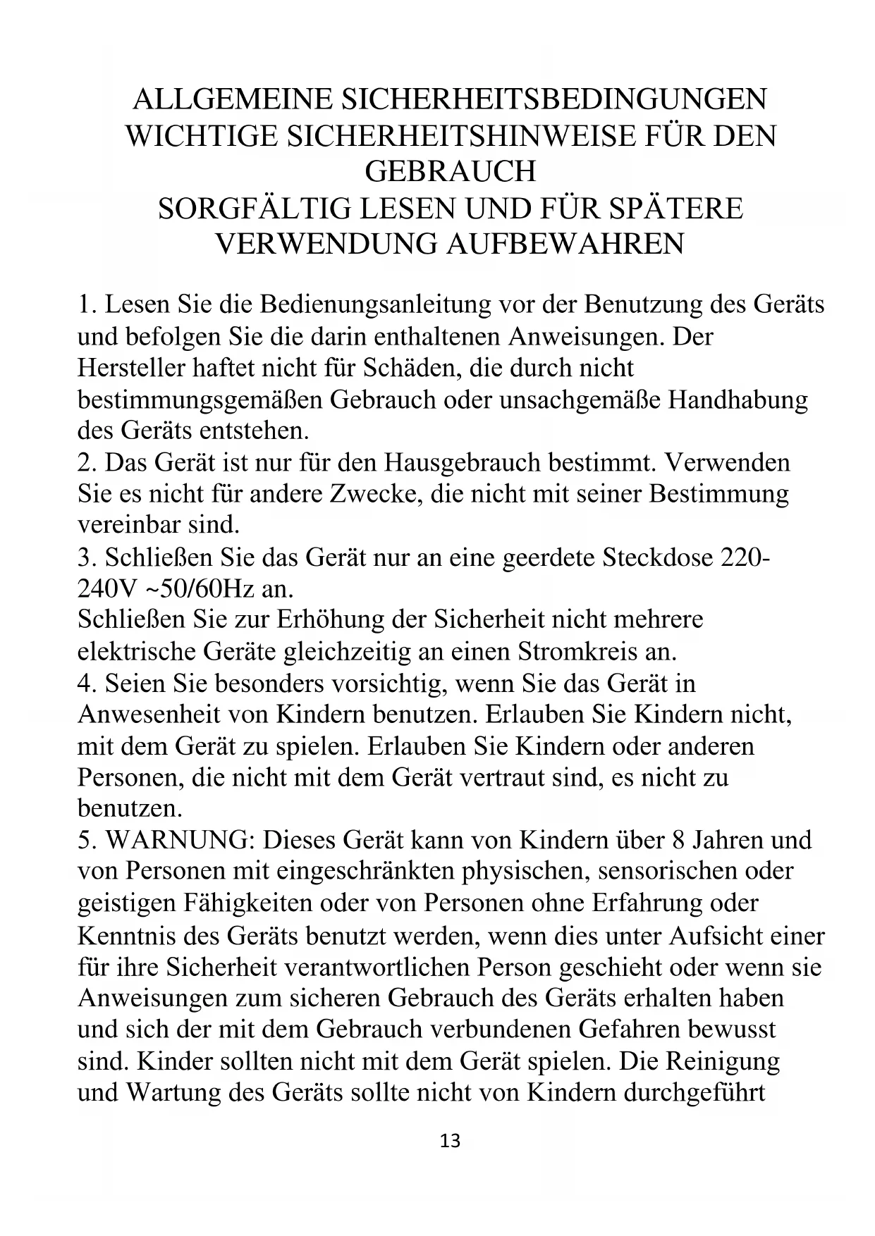5. WARNUNG: Dieses Gerät kann von Kindern über 8 Jahren und