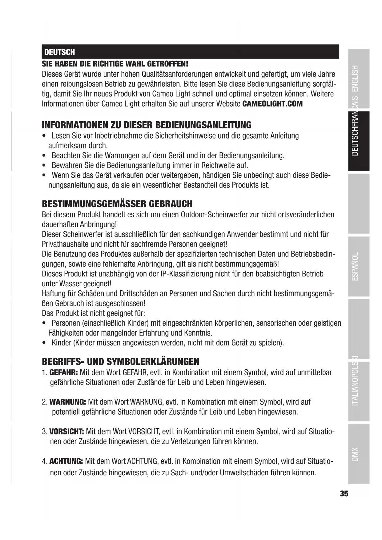 beleuchteten Fläche!38 DMX ITALIANO POLSKI ESPAÑOL FRANCAIS DEUTSCHENGLISH VORSICHT: