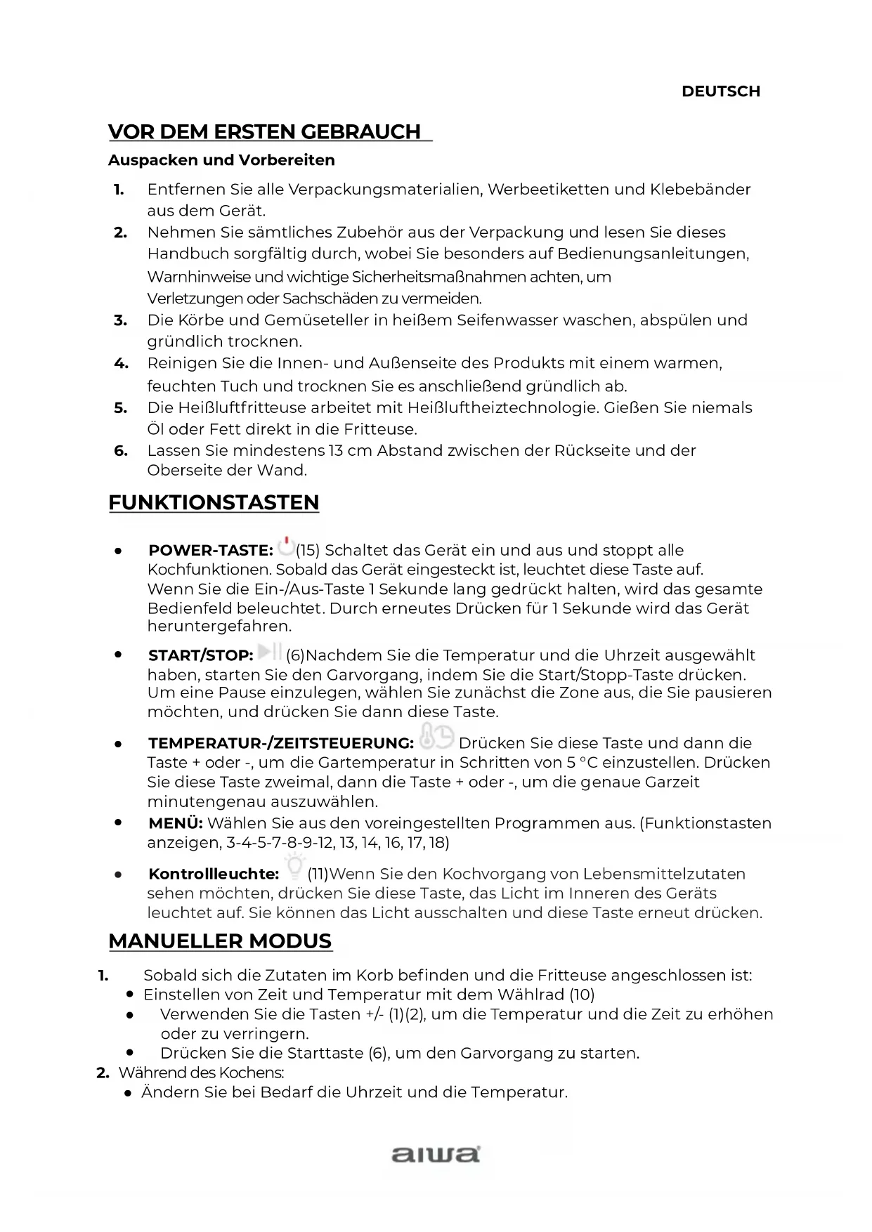 Bewahren Sie die Heißluftfritteuse in der Originalverpackung oder an einem sauberen, trockenen Ort auf.DEUTSCH HILFREICHE TIPPS