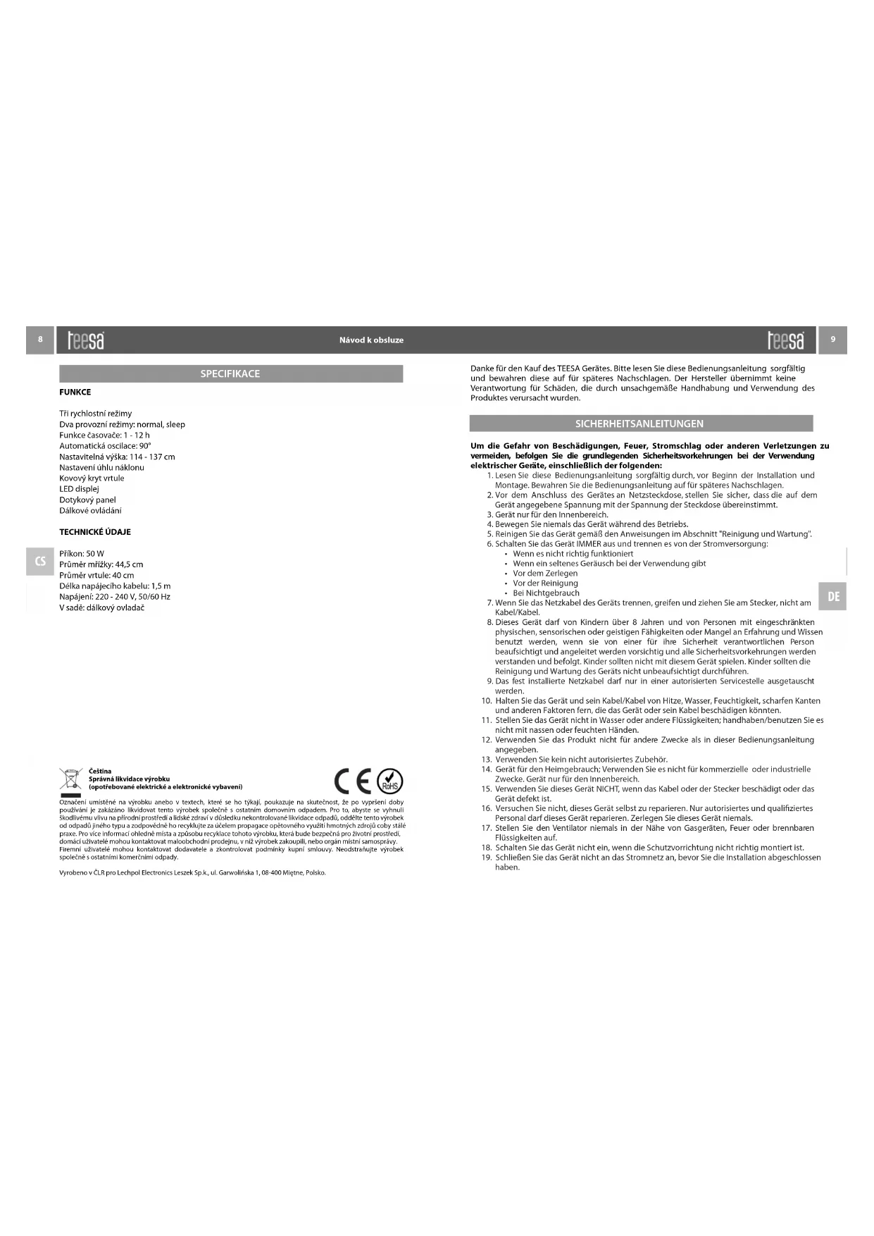 BEDIENUNGSANLEITUNG TSA8065 Teesa