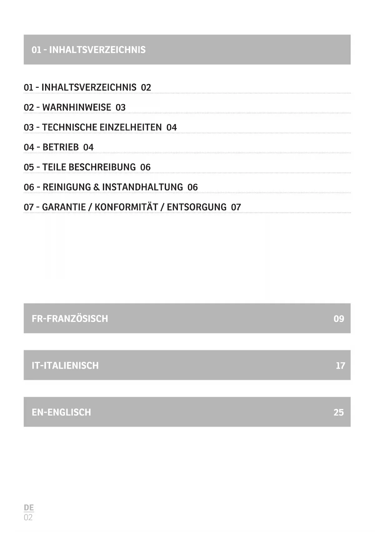 FR-FRANZÖSISCH 09 IT-ITALIENISCH 17 EN-ENGLISCH 25