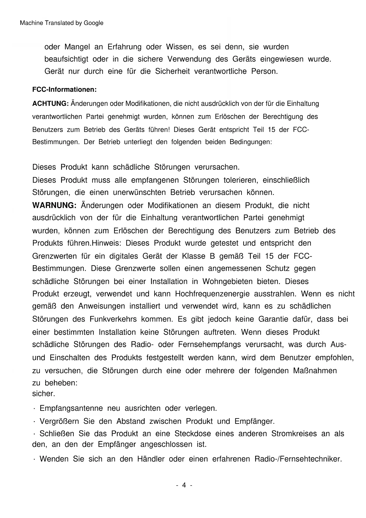 DTLS007(B) articles (s) DTLS010(B) Description 50Hz/1520W/6,5L 1Nom Tonneauàcirefondante 50Hz/1520W/10L 50Hz/1520W/10L 60Hz/1100W/10L 50Hz/1520W/6,5L 2Modèle Modèle DTLS007(C) 60Hz/1100W/6,5L DTLS010(C) 220240V Notation Description 220240V articles Machine Translated by GoogleMachine Translated by GoogleMachine Translated by GoogleMachine Translated by GoogleMachine Translated by GoogleMachine Translated by GoogleMachine Translated by GoogleMachine Translated by Google- 4 - WARNUNG: Änderungen oder Modifikationen an diesem Produkt, die nicht ausdrücklich von der für die Einhaltung verantwortlichen Partei genehmigt wurden, können zum Erlöschen der Berechtigung des Benutzers zum Betrieb des Produkts führen.Hinweis: Dieses Produkt wurde getestet und entspricht den Grenzwerten für ein digitales Gerät der Klasse B gemäß Teil 15 der FCC- Bestimmungen. Diese Grenzwerte sollen einen angemessenen Schutz gegen schädliche Störungen bei einer Installation in Wohngebieten bieten. Dieses Produkt erzeugt, verwendet und kann Hochfrequenzenergie ausstrahlen. Wenn es nicht gemäß den Anweisungen installiert und verwendet wird, kann es zu schädlichen Störungen des Funkverkehrs kommen. Es gibt jedoch keine Garantie dafür, dass bei einer bestimmten Installation keine Störungen auftreten. Wenn dieses Produkt schädliche Störungen des Radio- oder Fernsehempfangs verursacht, was durch Aus- und Einschalten des Produkts festgestellt werden kann, wird dem Benutzer empfohlen, zu versuchen, die Störungen durch eine oder mehrere der folgenden Maßnahmen zu beheben: Dieses Produkt muss alle empfangenen Störungen tolerieren, einschließlich Störungen, die einen unerwünschten Betrieb verursachen können. FCC-Informationen: ACHTUNG: Änderungen oder Modifikationen, die nicht ausdrücklich von der für die Einhaltung verantwortlichen Partei genehmigt wurden, können zum Erlöschen der Berechtigung des Benutzers zum Betrieb des Geräts führen! Dieses Gerät entspricht Teil 15 der FCC- Bestimmungen. Der Betrieb unterliegt den folgenden beiden Bedingungen: sicher. beaufsichtigt oder in die sichere Verwendung des Geräts eingewiesen wurde. Dieses Produkt kann schädliche Störungen verursachen. Gerät nur durch eine für die Sicherheit verantwortliche Person. oder Mangel an Erfahrung oder Wissen, es sei denn, sie wurden