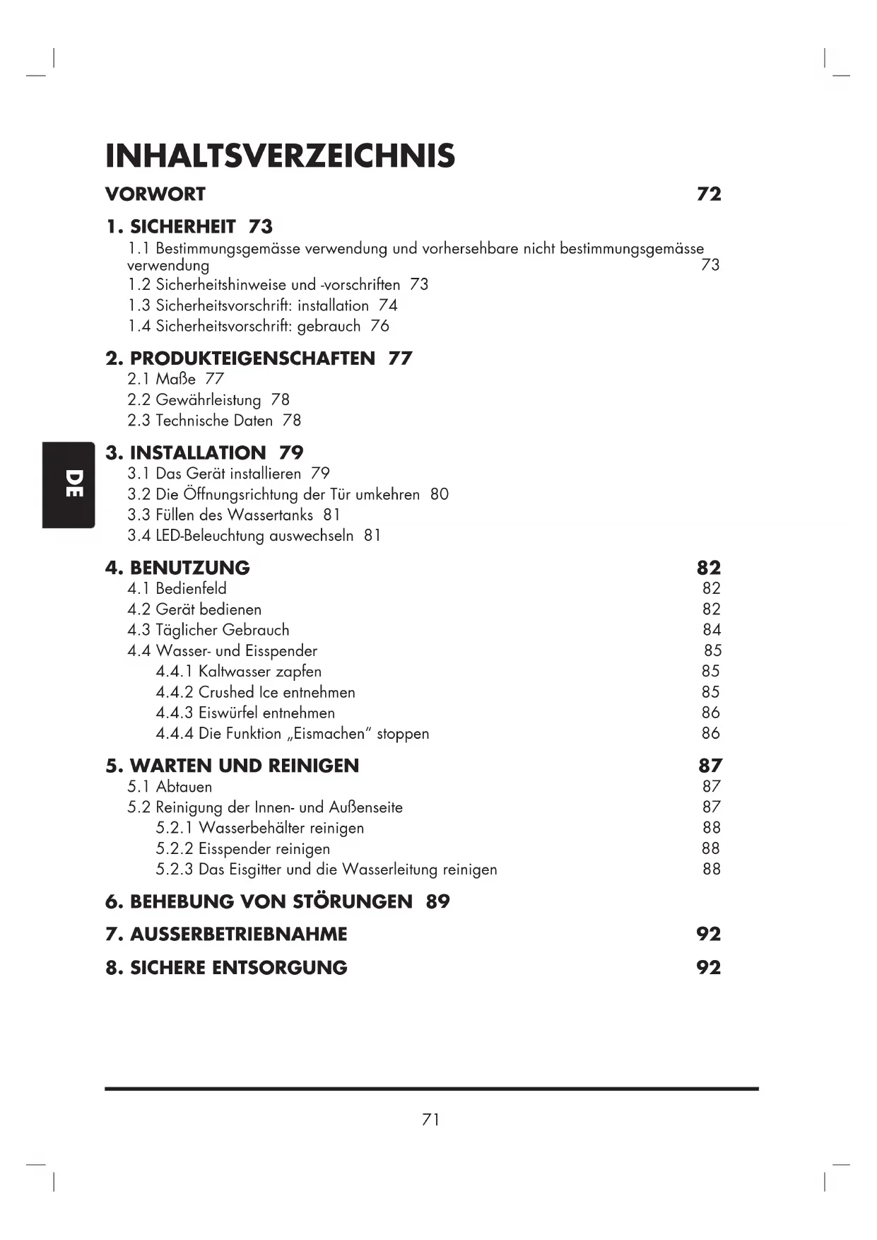 1.4 Sicherheitsvorschrift: gebrauch 76