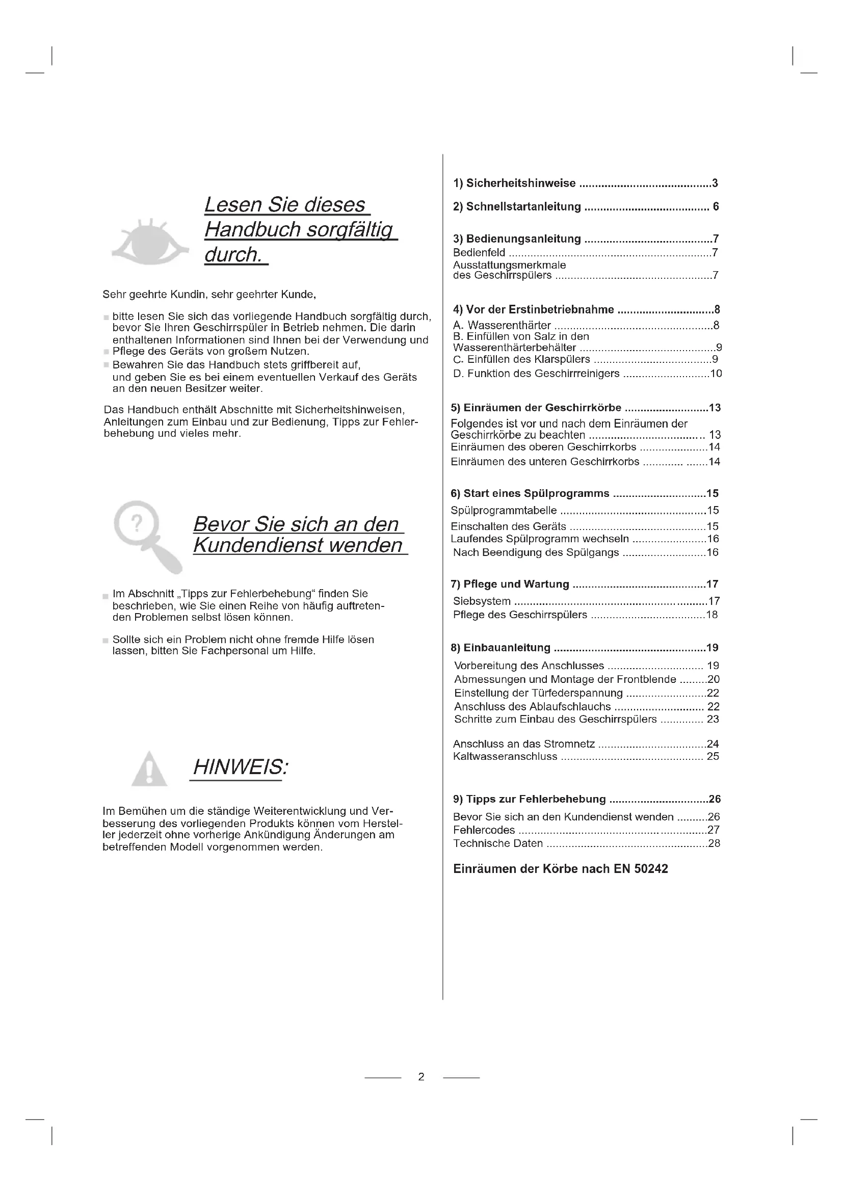 - Bevor Sie sich an den Kundendienst wenden p. 26