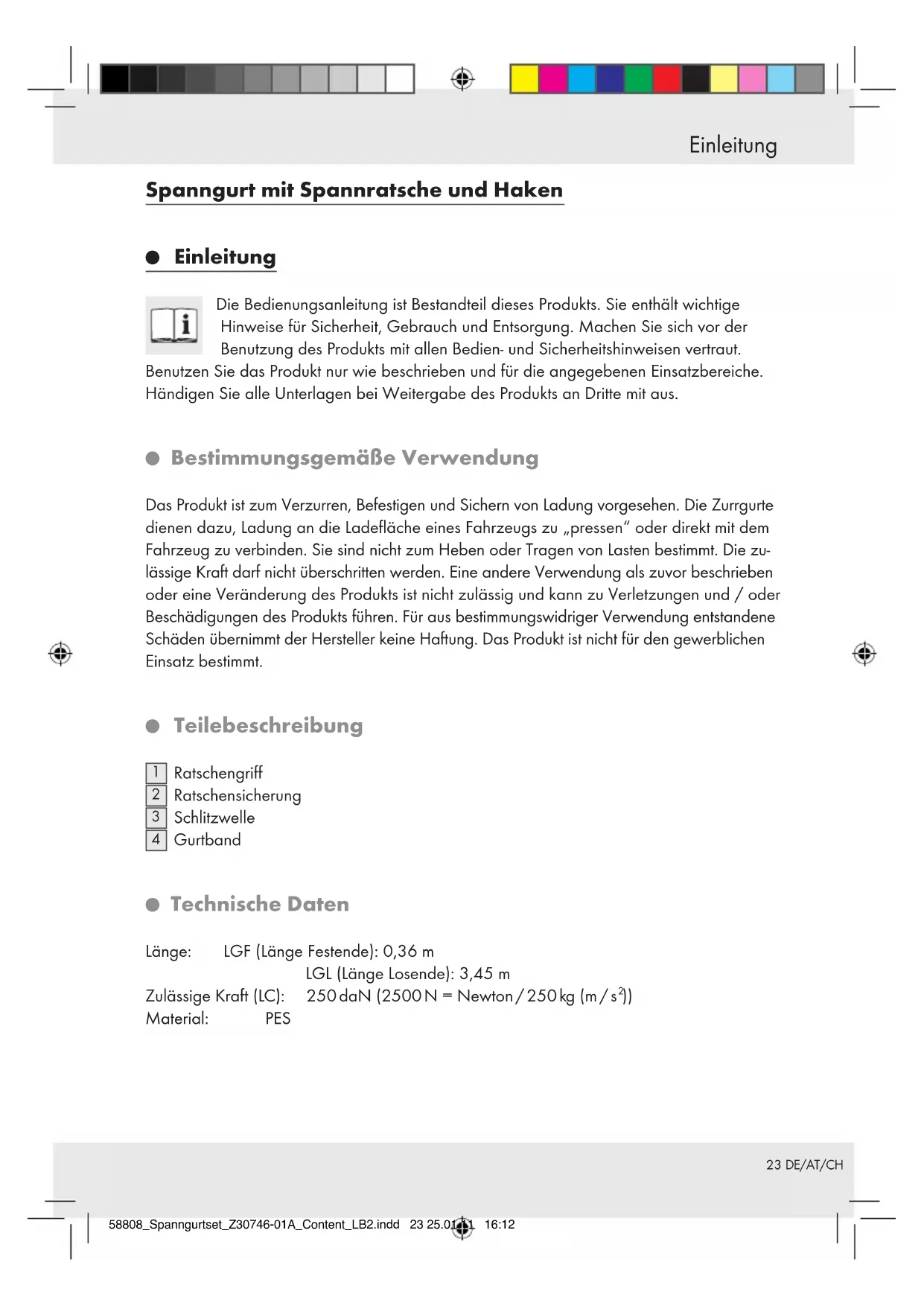 58808_Spanngurtset_Z30746-01A_Cover_LB2.indd 1 25.01.11 16:05Z30746-01 Spanngurt mit SpannratSche und haken Bedienungs- und Sicherheitshinweise