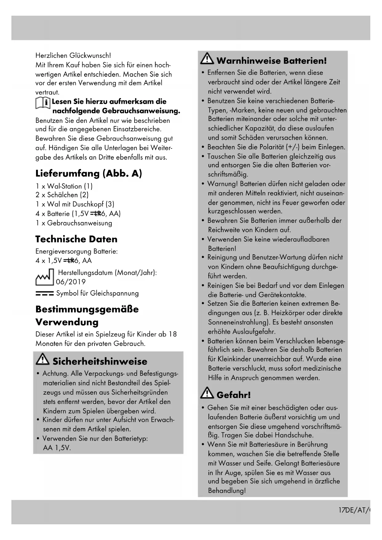 - Verwenden Sie nur den Batterietyp: AA 1,5V. Warnhinweise Batterien!