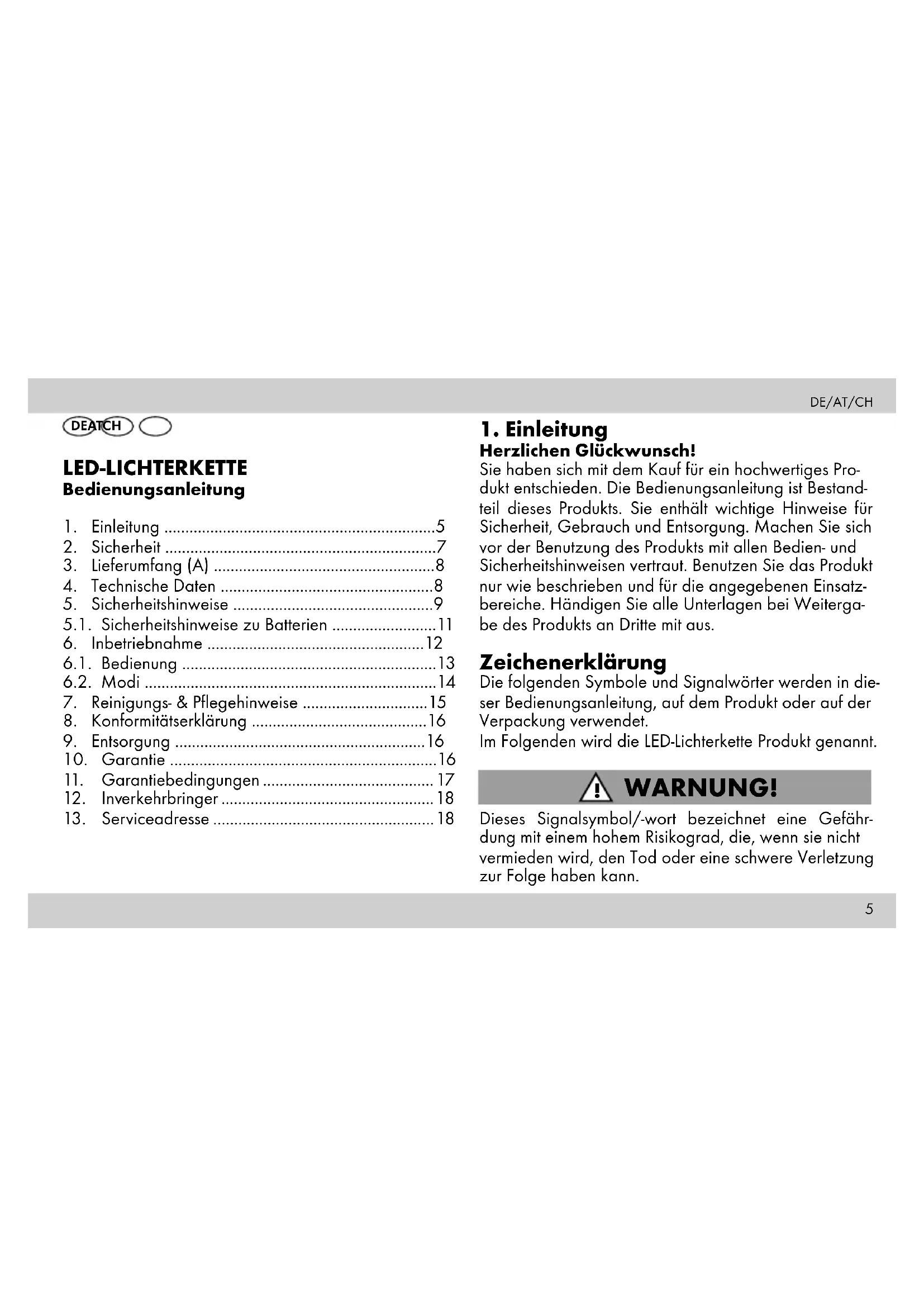 DE AT CH LED-LICHTERKETTE Bedienungsanleitung