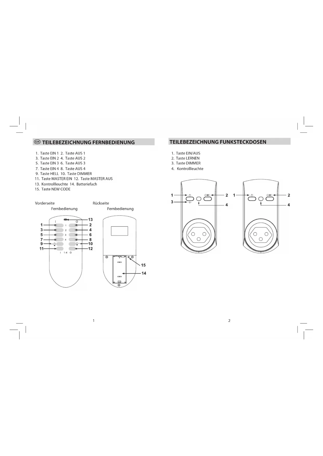 1) Funksteckdose ohne Dimmer