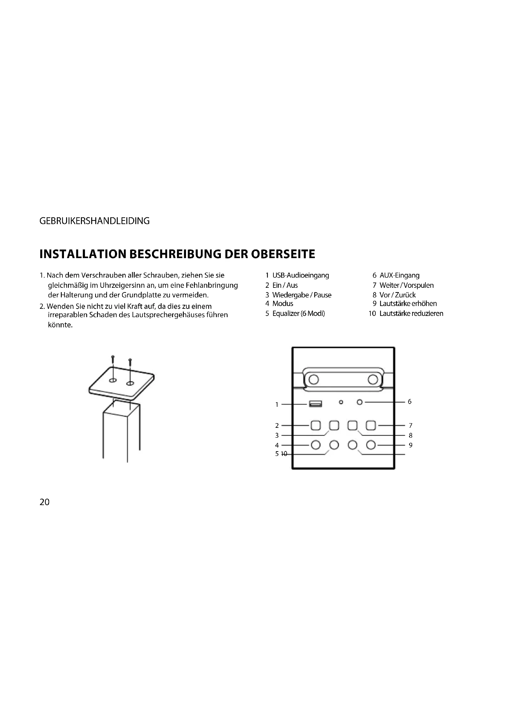 INSTALLATION BESCHREIBUNG DER OBERSEITE