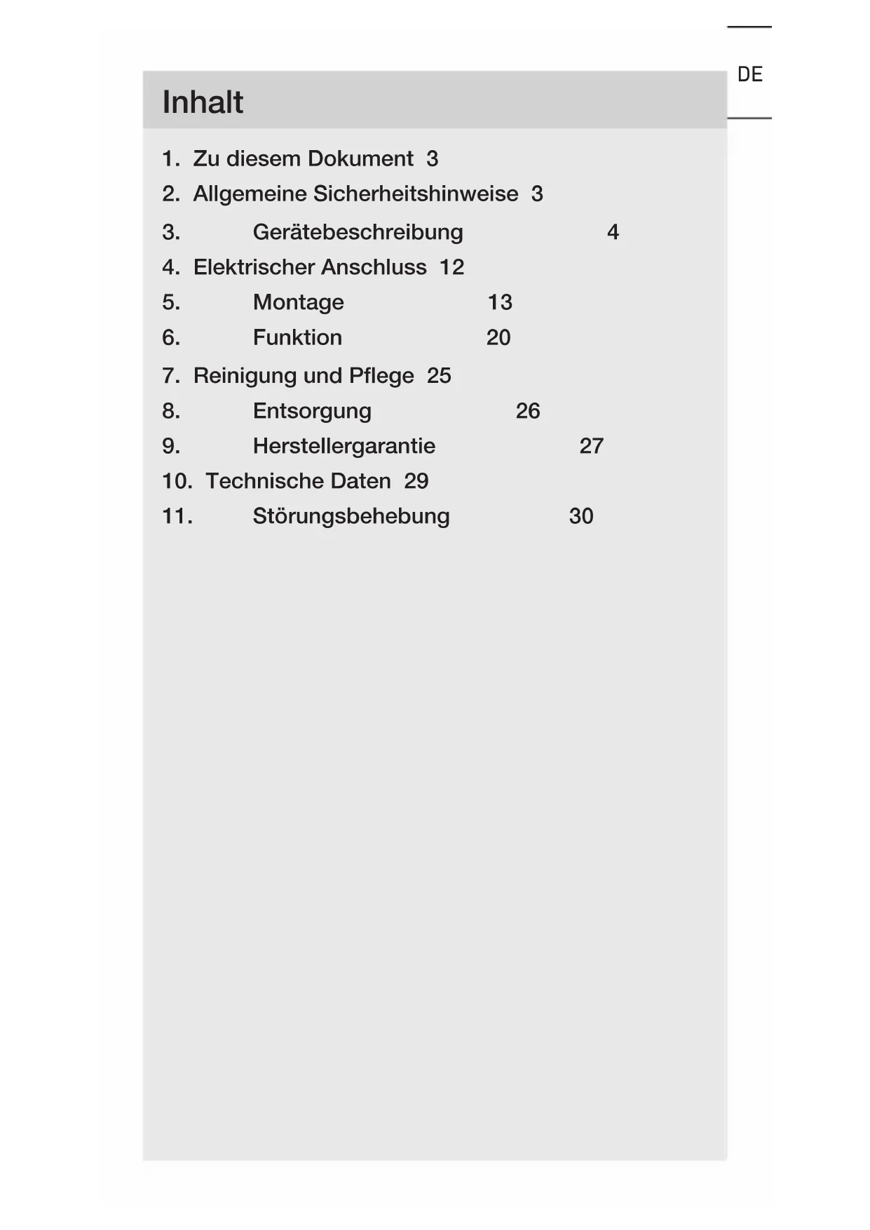HERSTELLER GARANTIE HERSTELLER GARANTIE– 29 – Inhalt DEDE