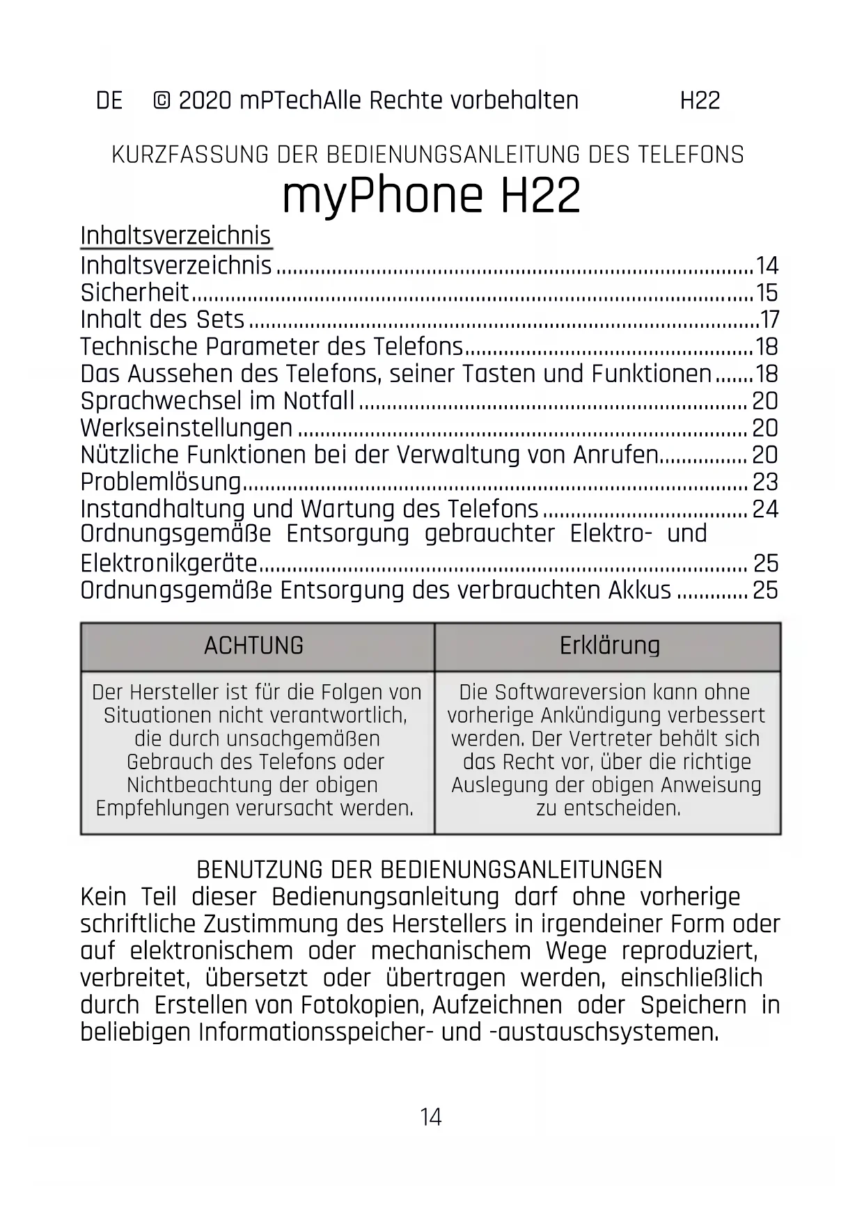 - myPhone H22 Inhaltsverzeichnis Inhaltsverzeichnis p. 14