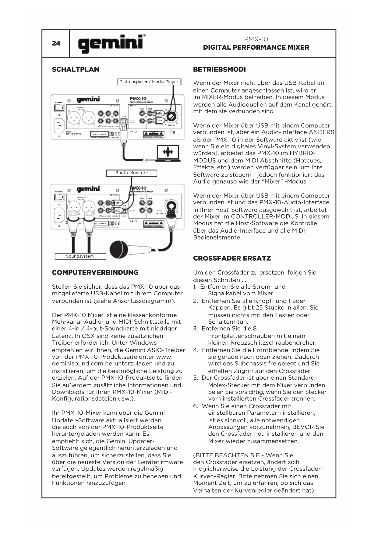 Finden Sie kostenlos die Bedienungsanleitung des Geräts PMX10 GEMINI als PDF.