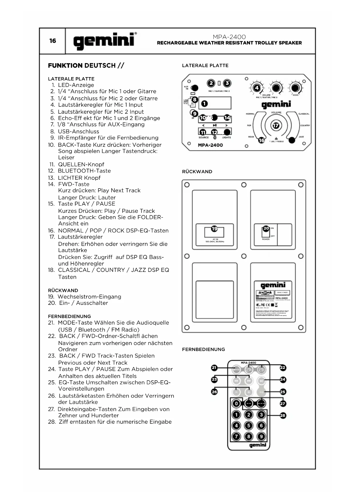 BEDIENUNGSANLEITUNG MPA2400 GEMINI
