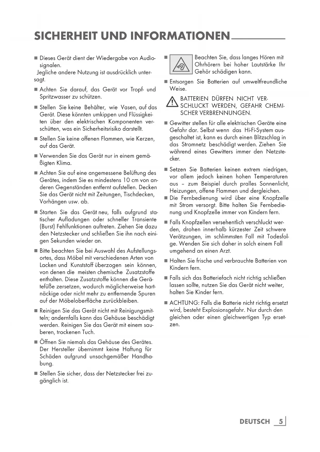 Dieses Gerät dient der Wiedergabe von Audio- signalen. Jegliche andere Nutzung ist ausdrücklich unter- sagt.