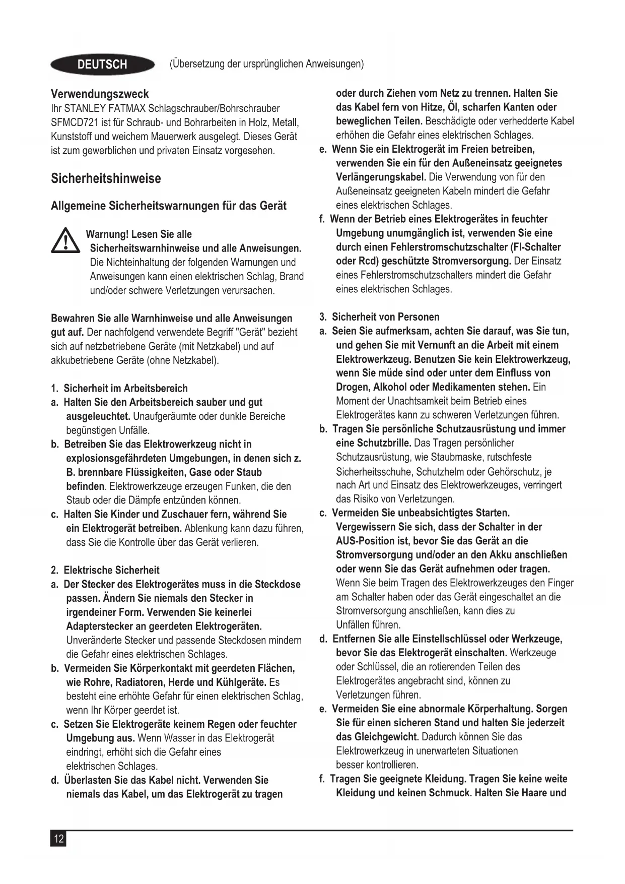 Finden Sie kostenlos die Bedienungsanleitung des Geräts SFMCD721 STANLEY als PDF.