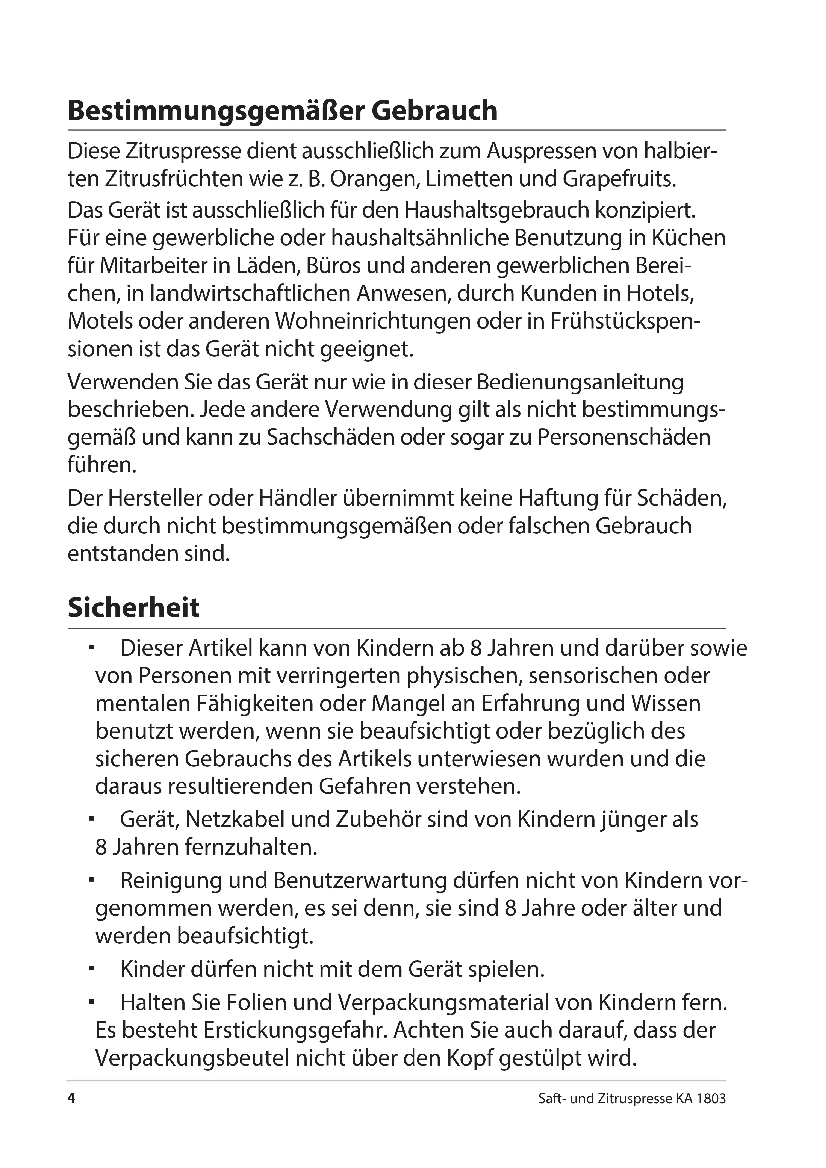 These Zitruspresse dient ausschließlich zum Auspressen von halbierten Zitrusfrüchten wie z. B. Orangen, Limetten und Grapefruits. Das Gerät ist ausschließlich für den Haushaltsgebrauch konzipiert. Für eine gewerbliche oder haushaltsähnliche Benutzung in Kuchen für Mitarbeiter in Läden, Büros und anderen gewerblichen Bereichen, in landwirtschaftlichen Anwesen, durch Kunden in Hotels, Motels oder anderen Wohneinrichtungen oder in Frühstücksponsen ist das Gerät nicht geeignet.