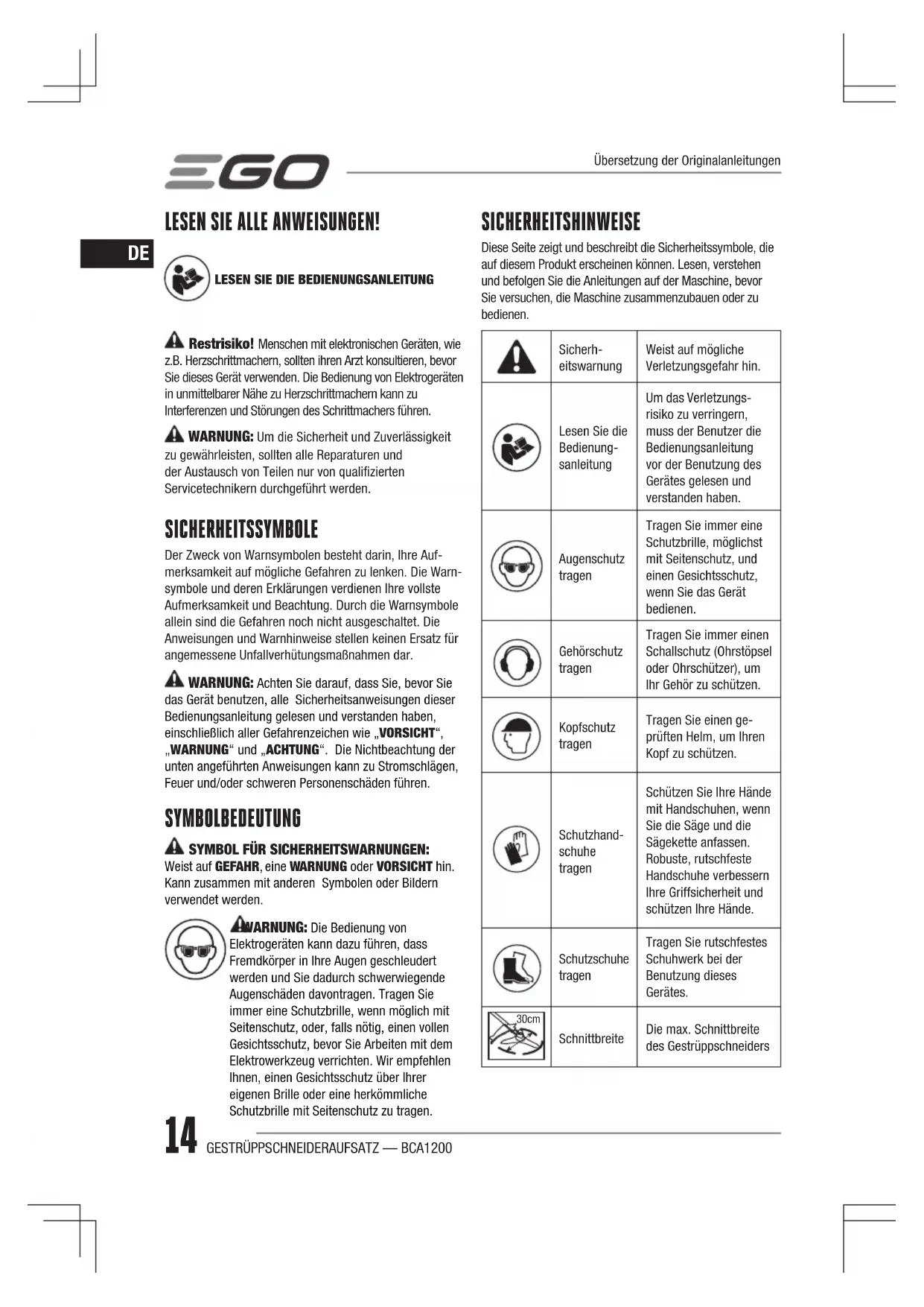 Laden Sie die Anleitung für Ihr Multifunktionswerkzeuge kostenlos im PDF-Format! Finden Sie Ihr Handbuch BCA1200 - EGO und nehmen Sie Ihr elektronisches Gerät wieder in die Hand. Auf dieser Seite sind alle Dokumente veröffentlicht, die für die Verwendung Ihres Geräts notwendig sind. BCA1200 von der Marke EGO.