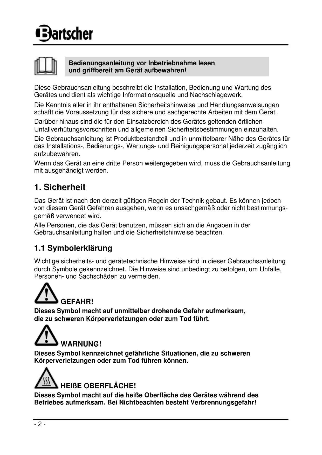 Finden Sie kostenlos die Bedienungsanleitung des Geräts IK 27TC BARTSCHER als PDF.