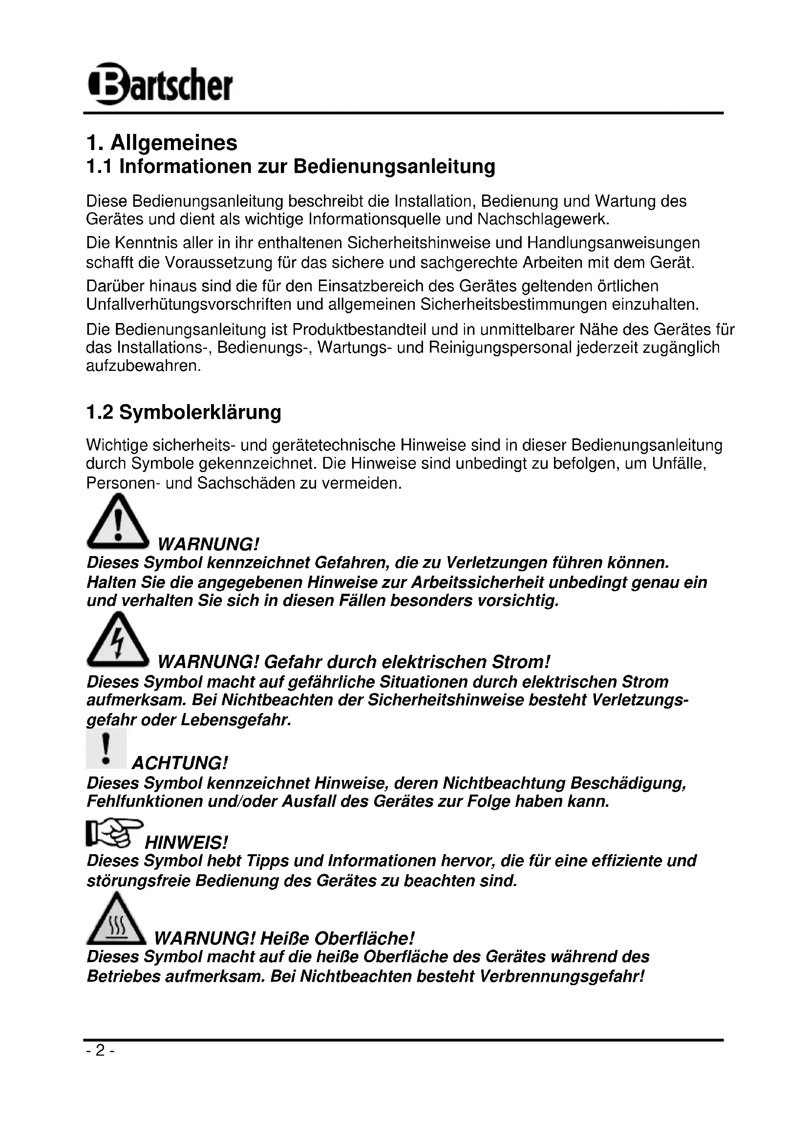 Bedienungsanleitung vor Inbetriebnahme lesen und griffbereit am Gerät aufbewahren!- 2 -