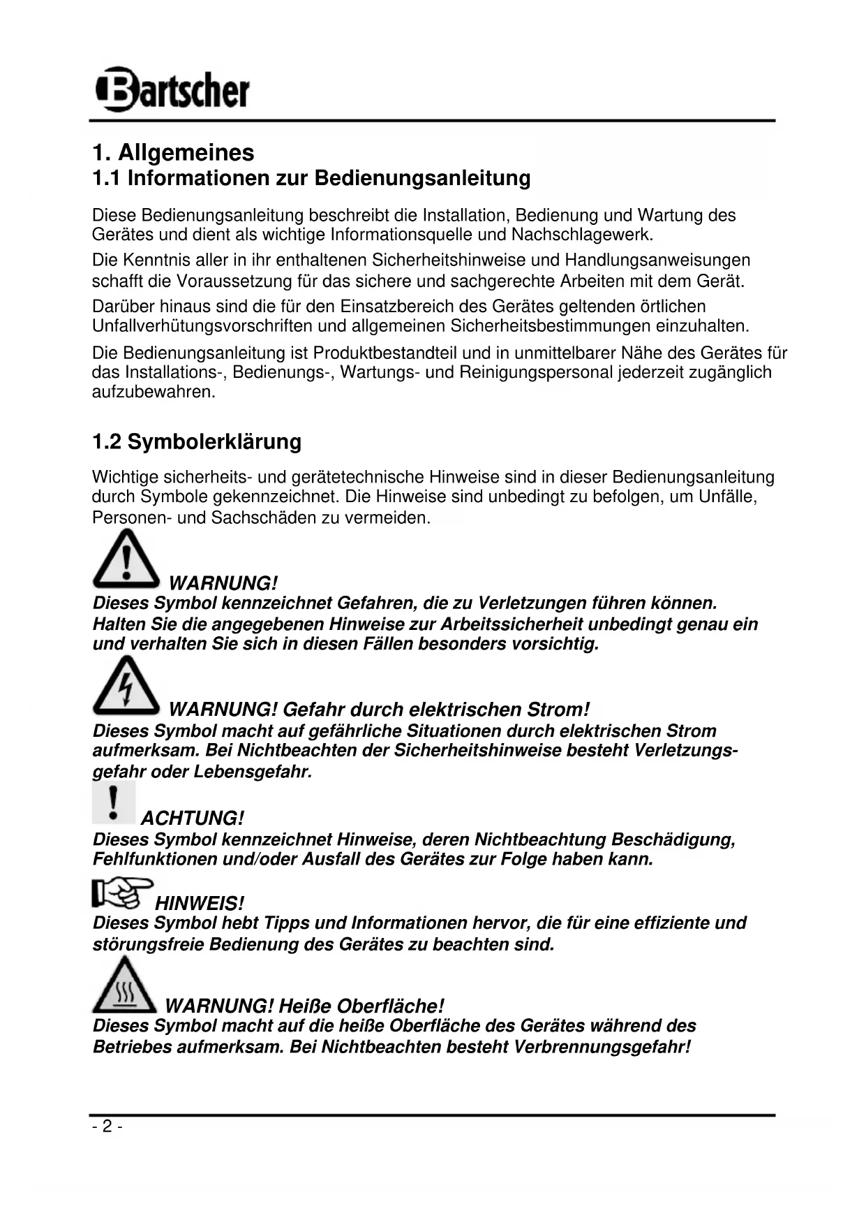 Bedienungsanleitung vor Inbetriebnahme lesen und griffbereit am Gerät aufbewahren! 1. Allgemeines ............................................................................................................... 2