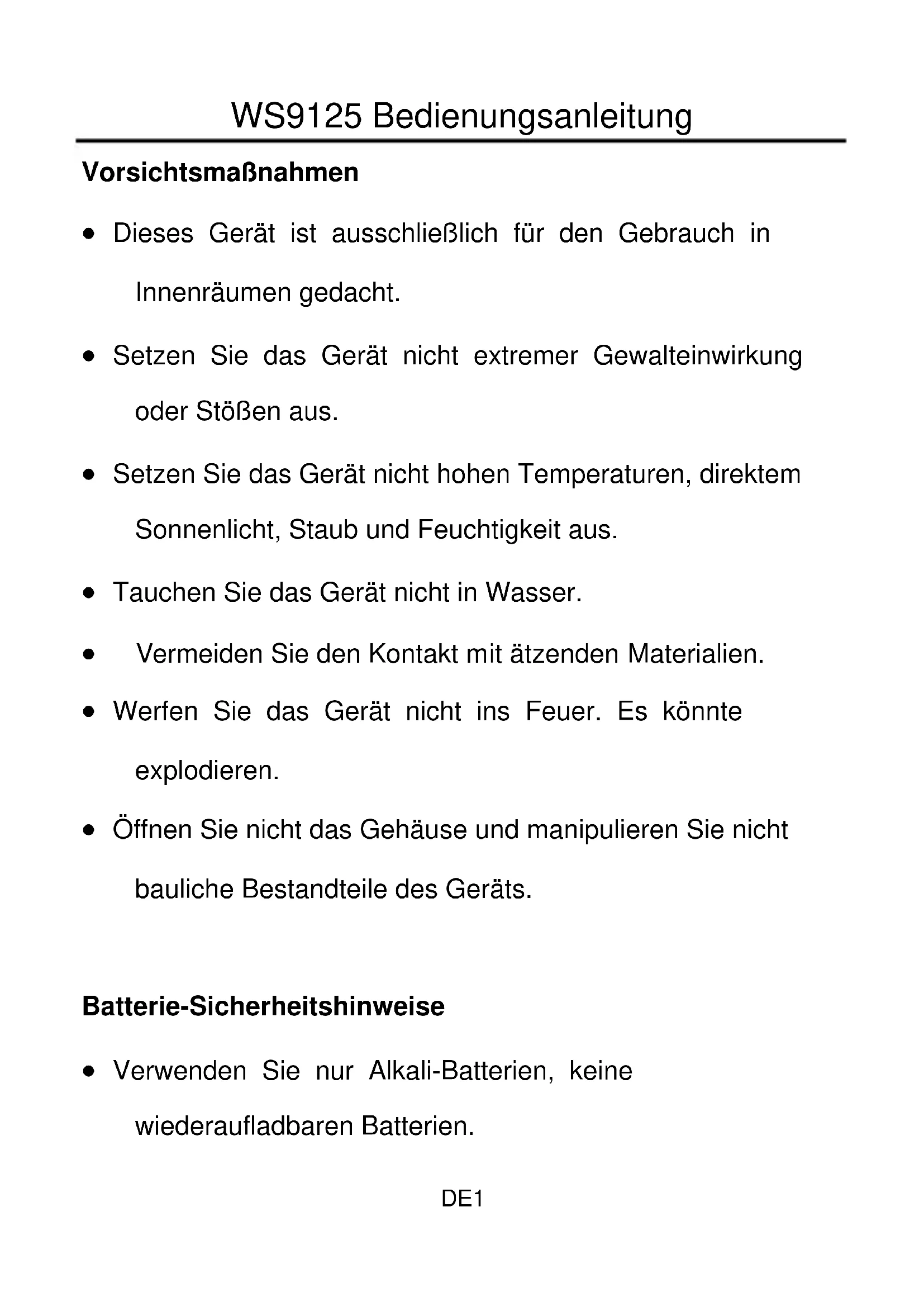 BEDIENUNGSANLEITUNG WS 9125 TECHNOLINE