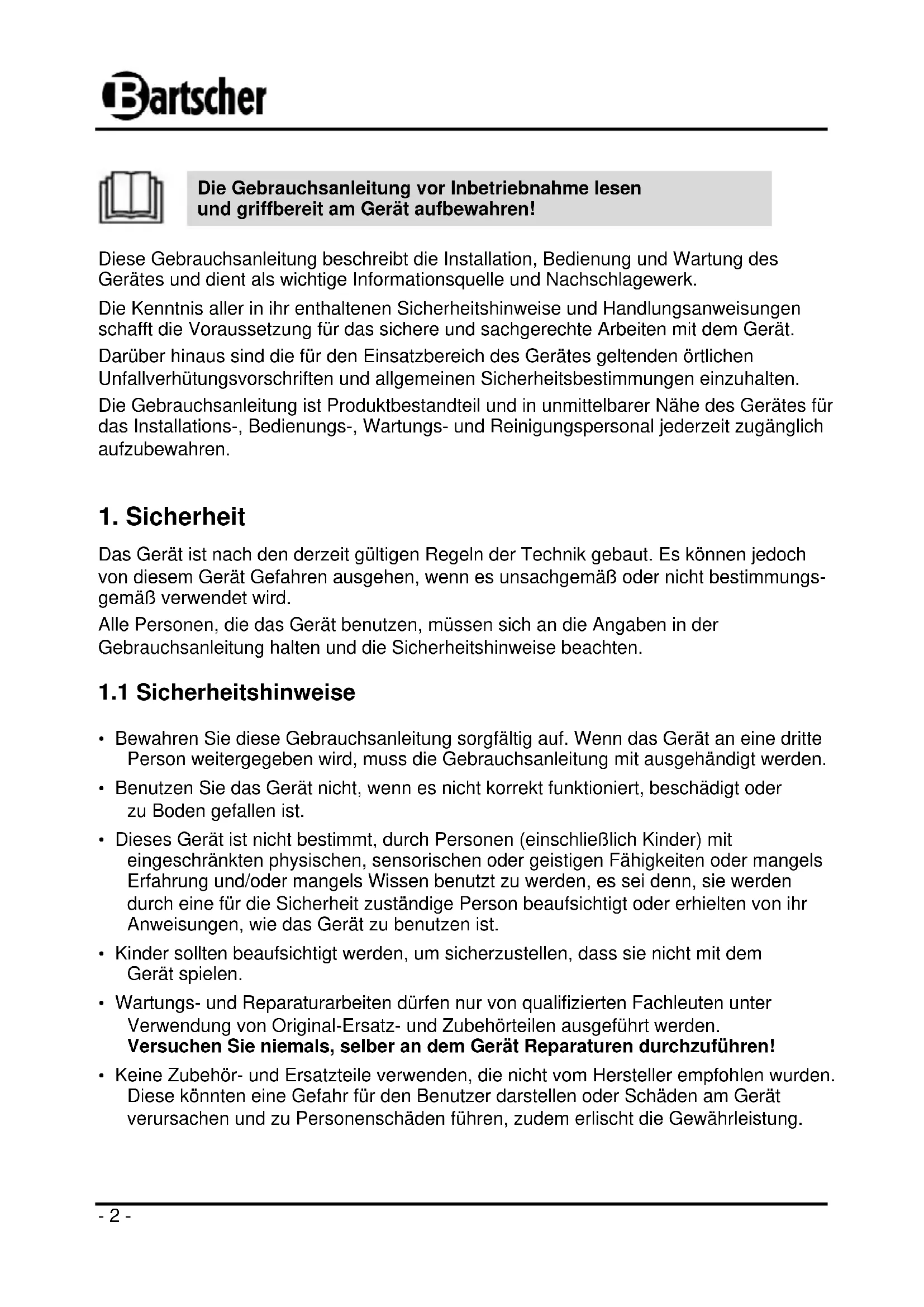 BEDIENUNGSANLEITUNG 150151 BARTSCHER