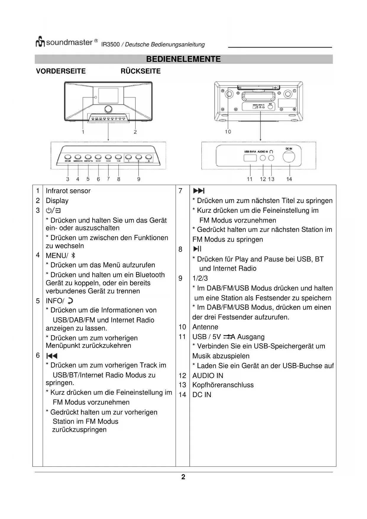 BEDIENUNGSANLEITUNG IR3500 Soundmaster