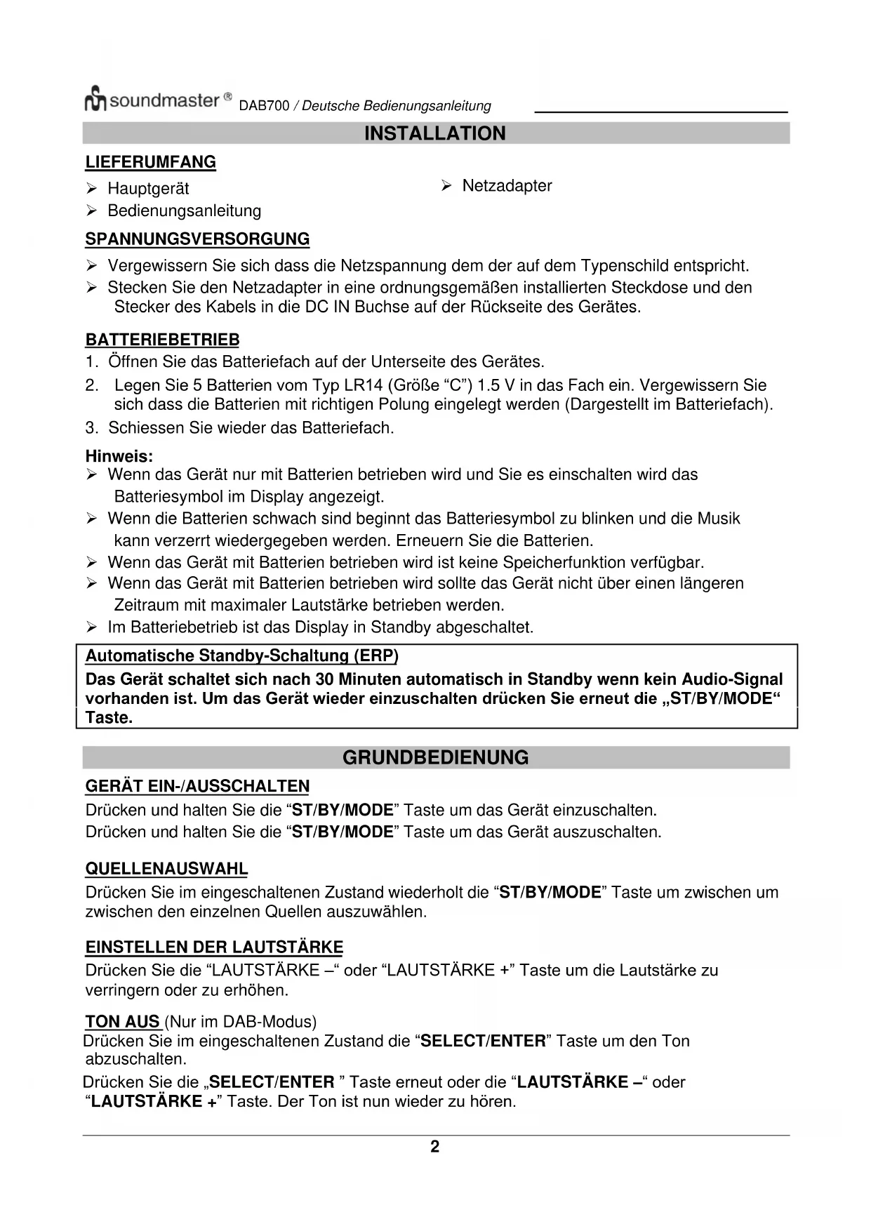 BEDIENUNGSANLEITUNG DAB700 Soundmaster