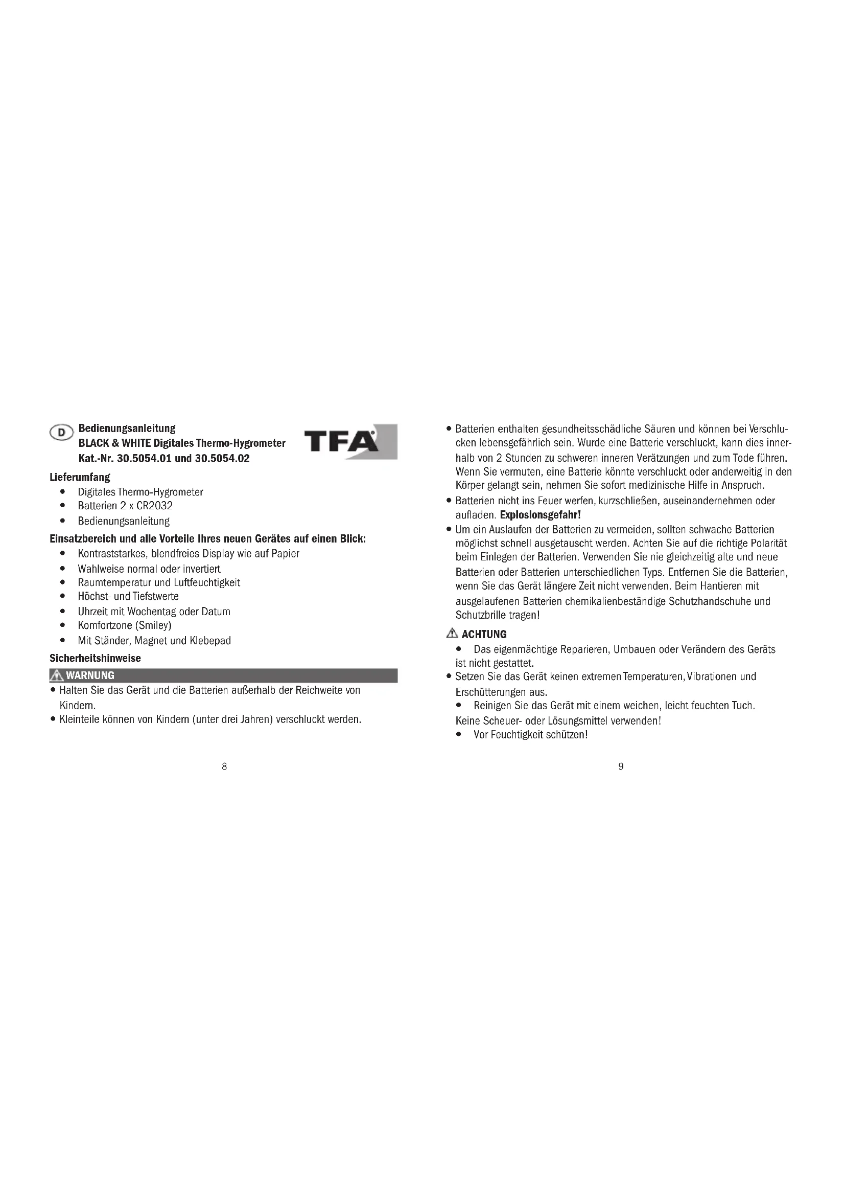 BEDIENUNGSANLEITUNG Black & White 30.5054.01 TFA