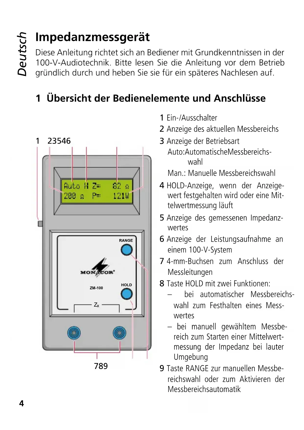 BEDIENUNGSANLEITUNG ZM100 Monacor