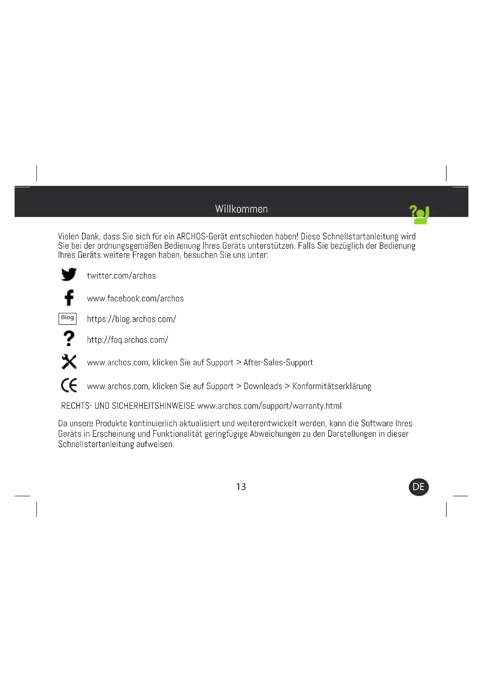 RECHTS- UND SICHERHEITSHINWEISE www.archos.com/support/warranty.html