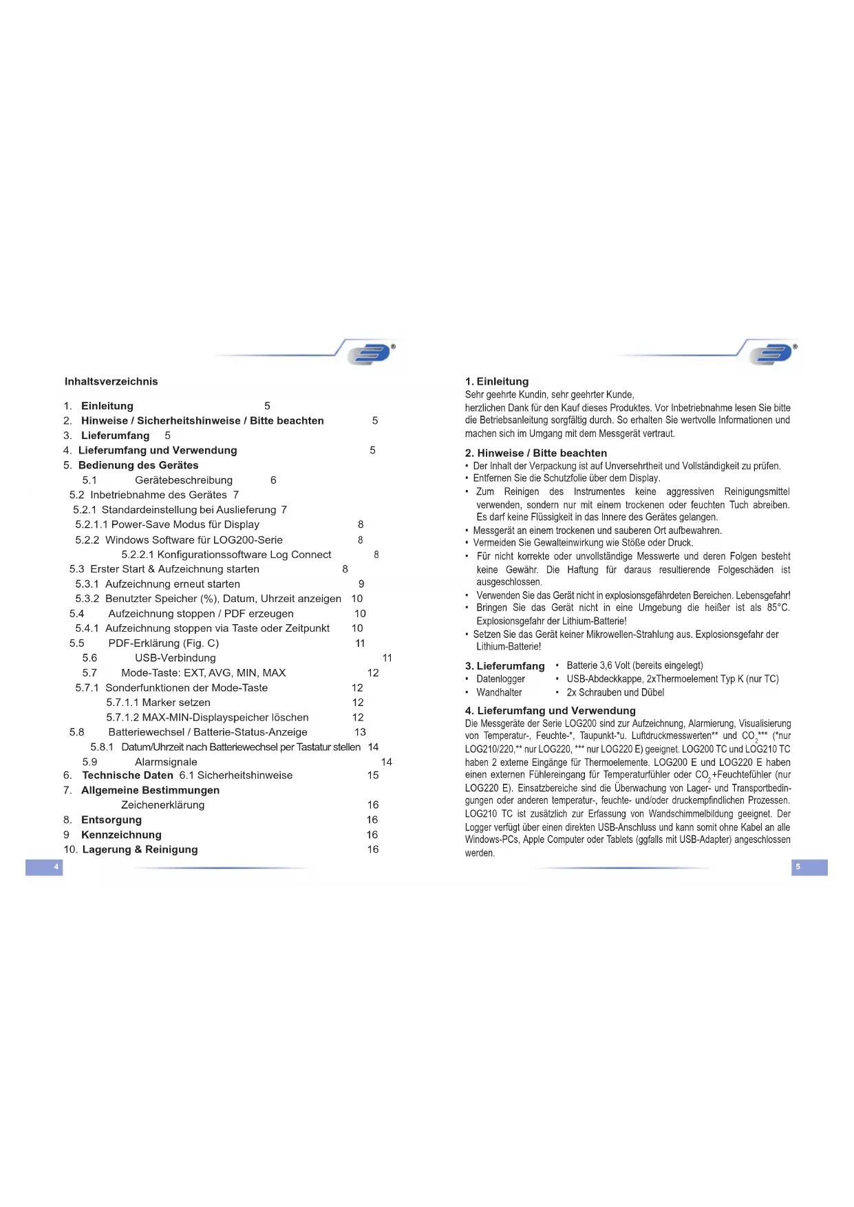 4. Lieferumfang und Verwendung 5