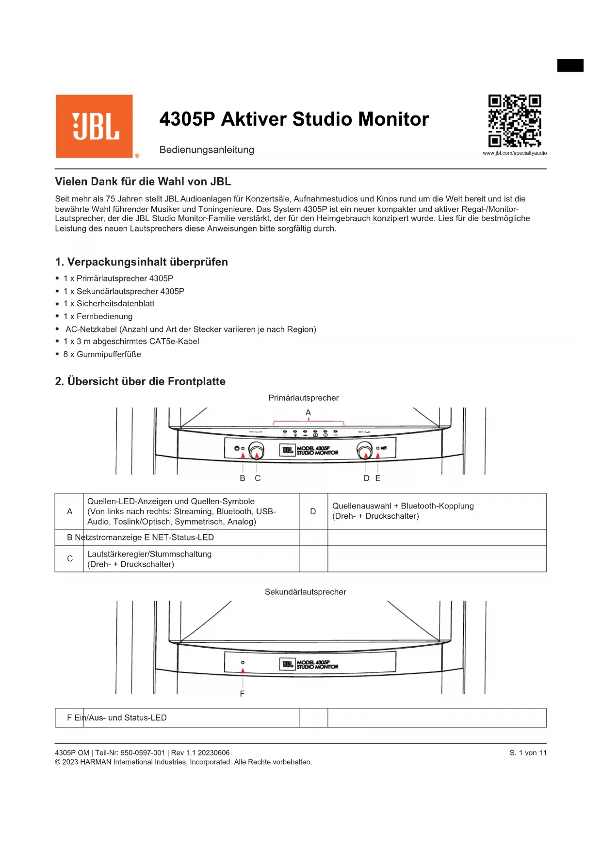 Finden Sie kostenlos die Bedienungsanleitung des Geräts 4305P JBL als PDF.