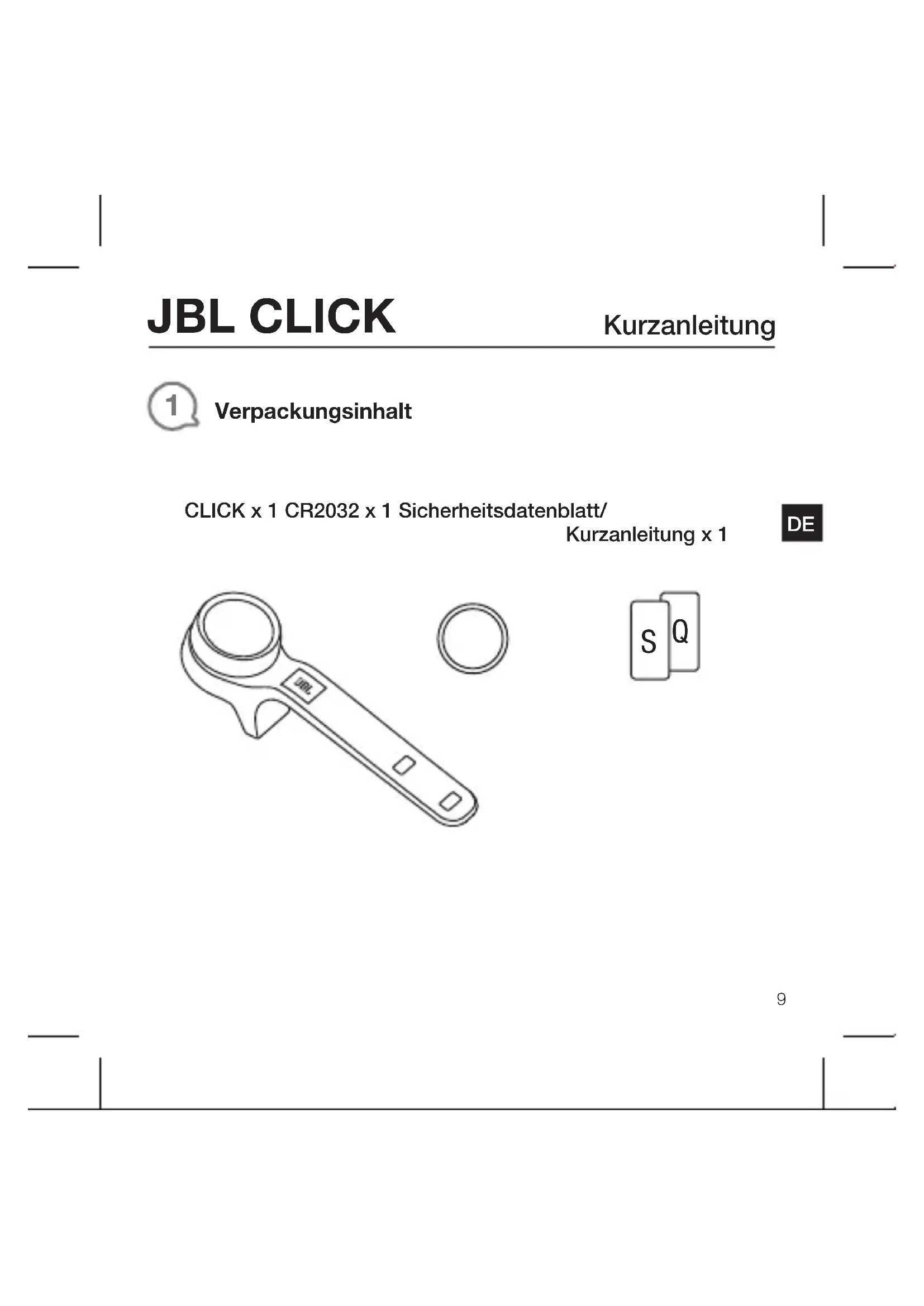 CLICK x 1 CR2032 x 1 Sicherheitsdatenblatt/Kurzanleitung x 1JBL CLICK Kurzanleitung