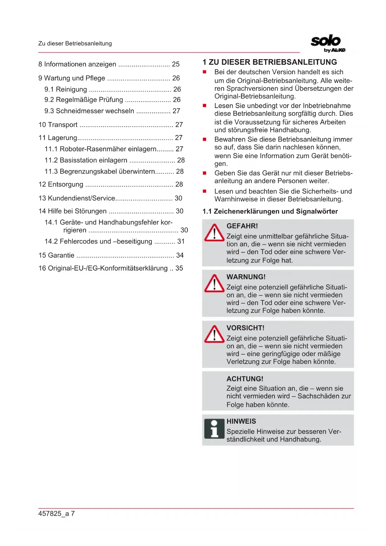 Robolinho 700I/1200I/2000I) ....... 13 3 Sicherheit................................................. 14