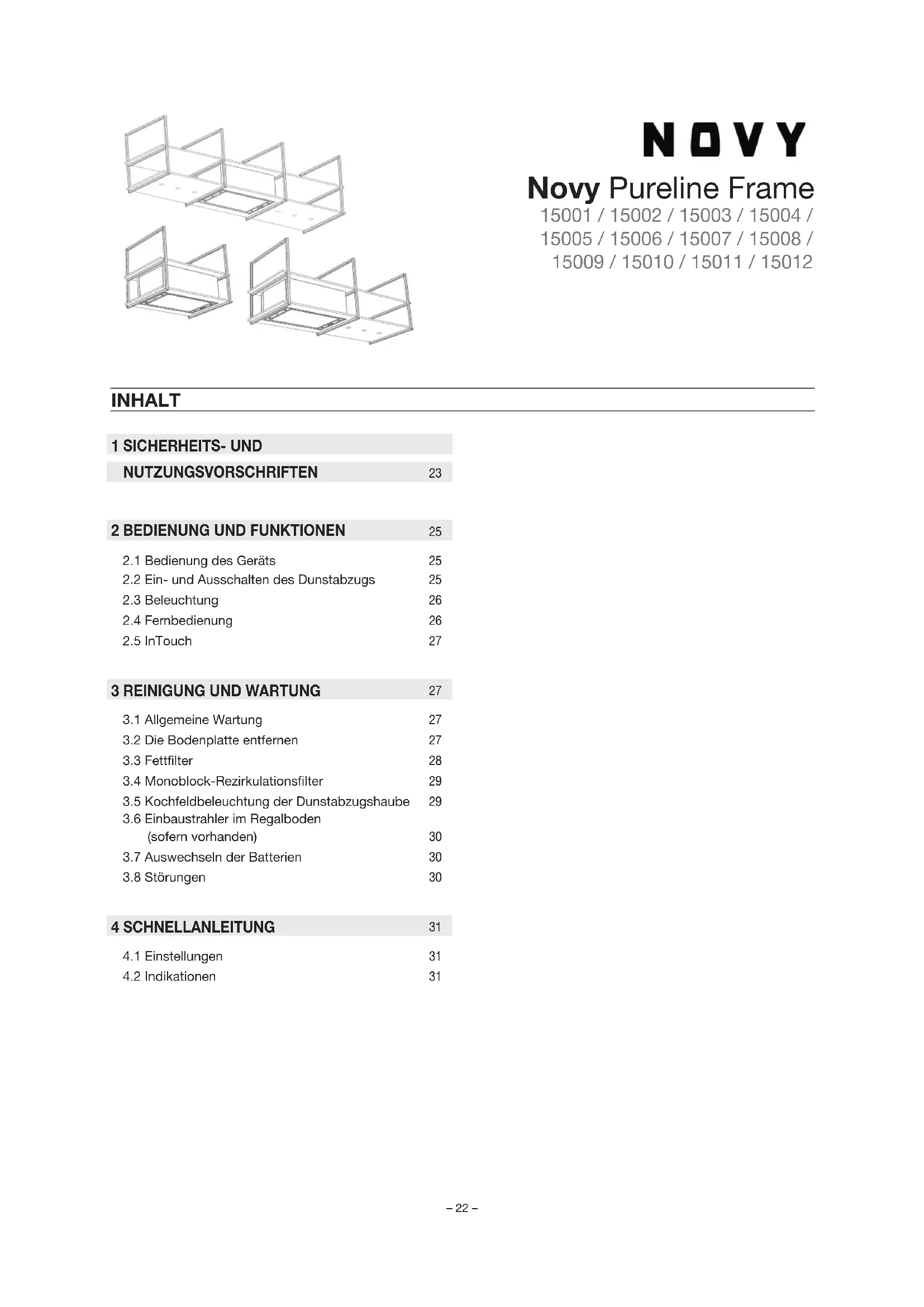 Pureline Frame 15003 - Dunstabzugshaube NOVY - Kostenlose Bedienungsanleitung