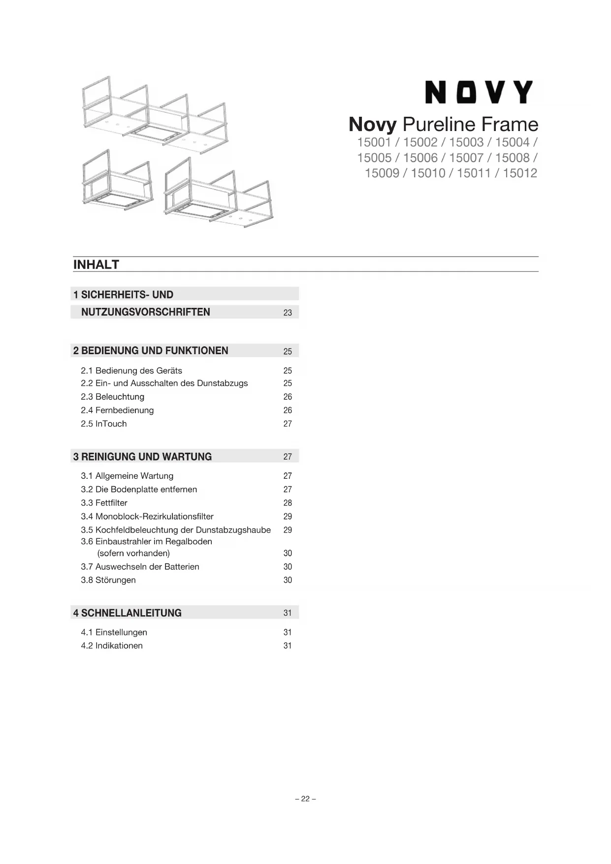 Pureline Frame 15005 - Dunstabzugshaube NOVY - Kostenlose Bedienungsanleitung