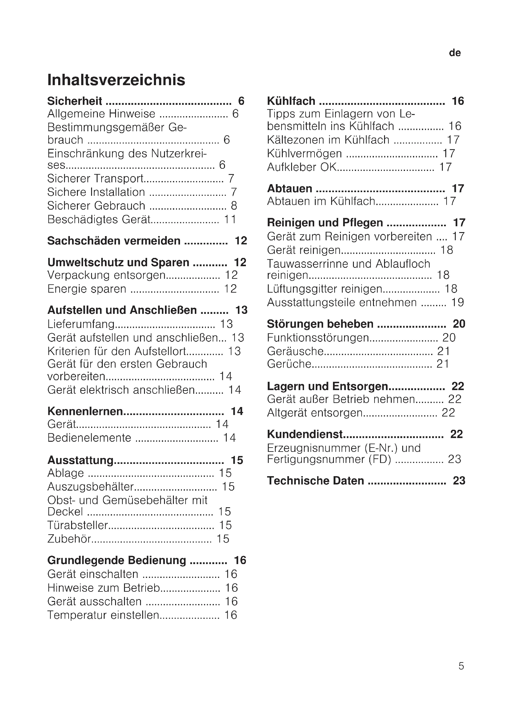 - Technische Daten de Sicherheit p. 23