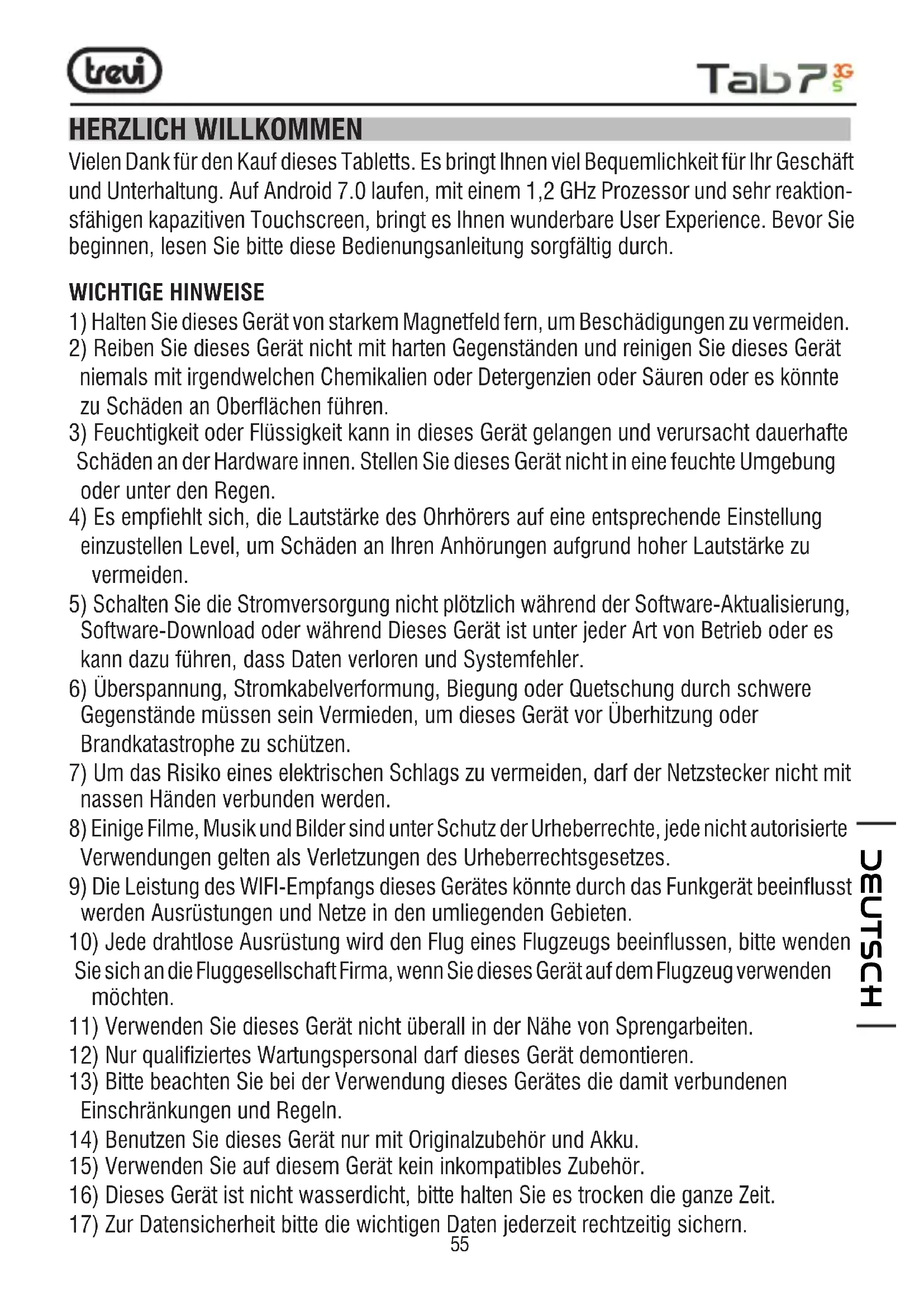BEDIENUNGSANLEITUNG TAB 7 3G S Trevi