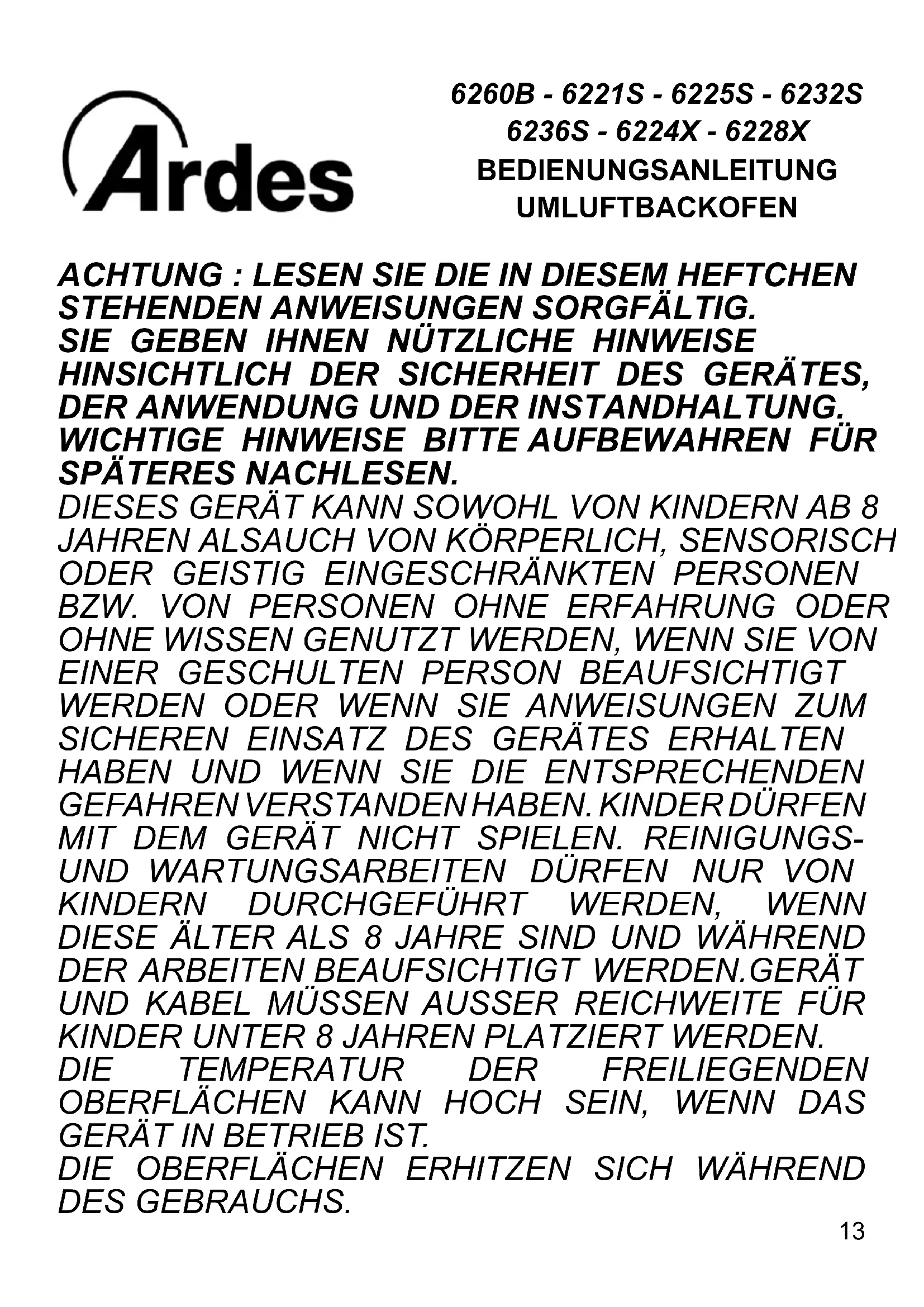 BEDIENUNGSANLEITUNG AR6228X ARDES