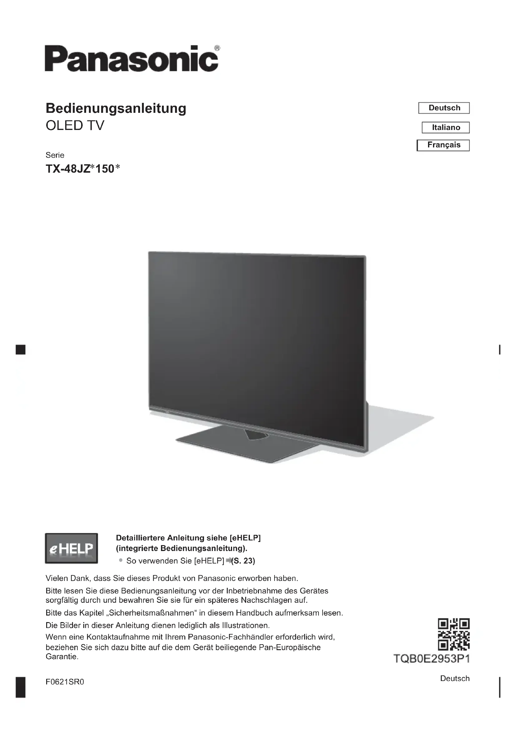 So verwenden Sie [eHELP] (S. 23) Deutsch Italiano Français Serie TX-48JZ
