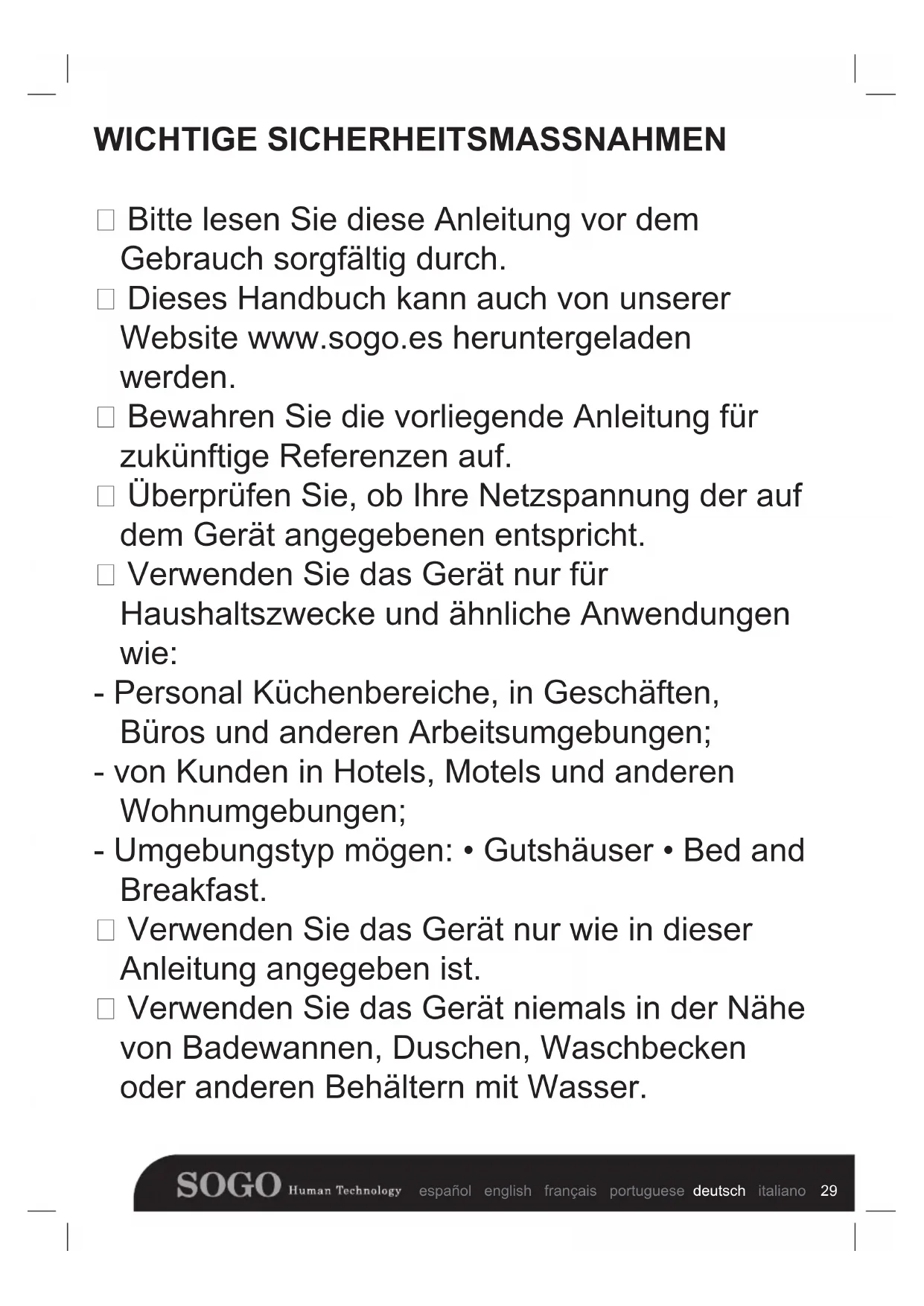 □ Dieses Handbuch kann auch von unserer Website www.sogo.es heruntergeladen werden.