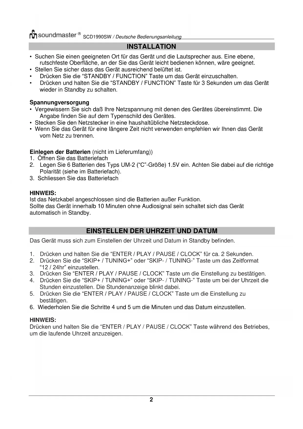 BEDIENUNGSANLEITUNG SCD1990 Soundmaster