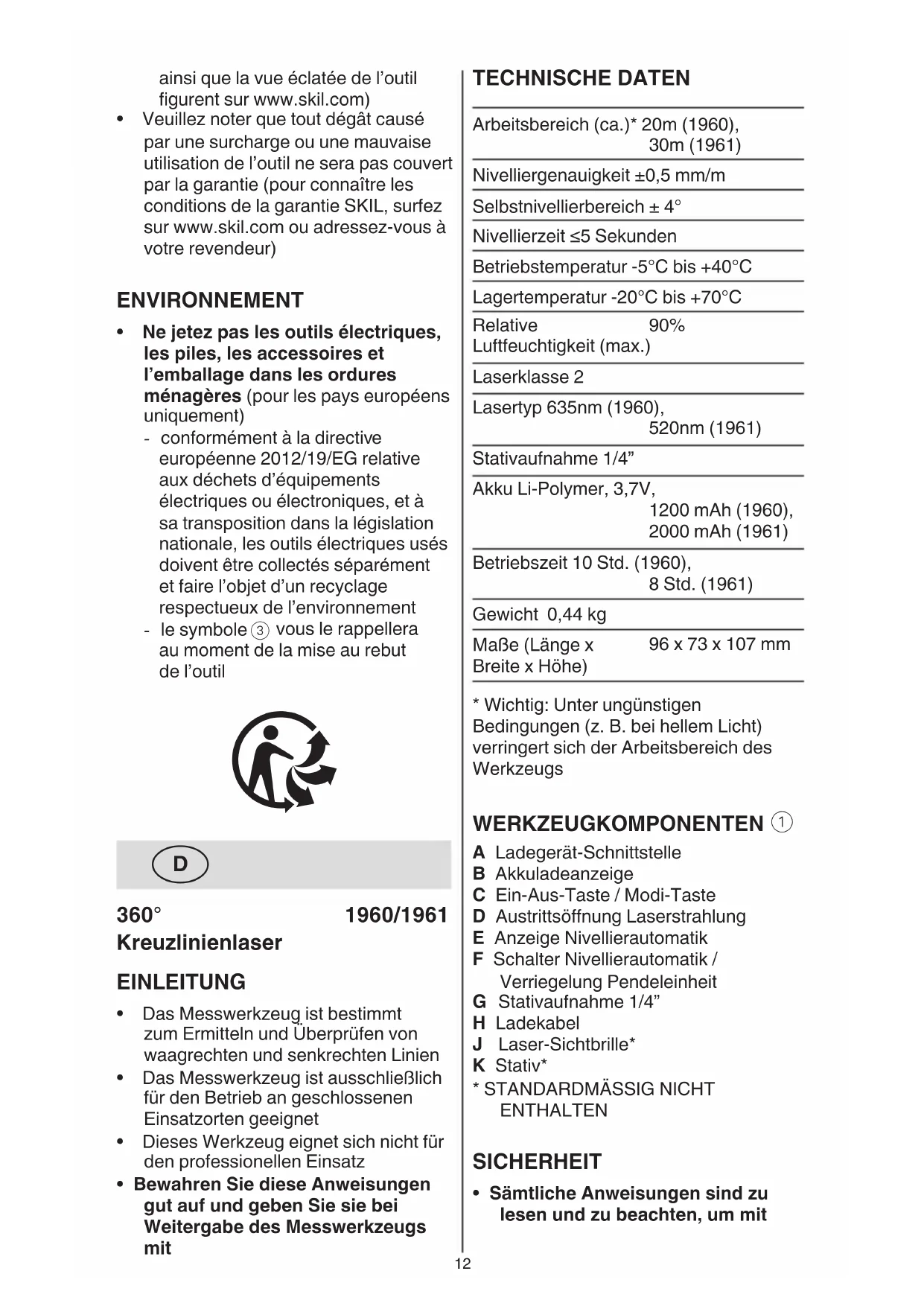 1961 DA - Laserwasserwaage SKIL - Kostenlose Bedienungsanleitung