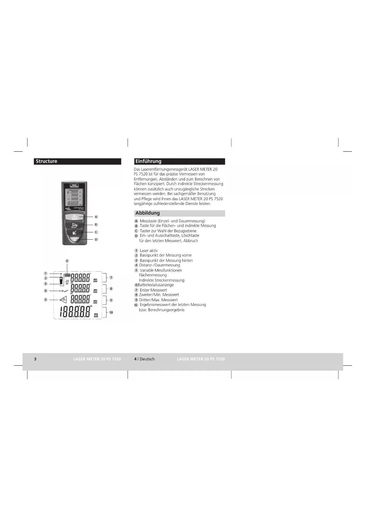 Ergebnismesswert der letzten Messung bzw. Berechnungsergebnis 3 LASER METER 20 PS 7520 4 | Deutsch LASER METER 20 PS 7520 Structure